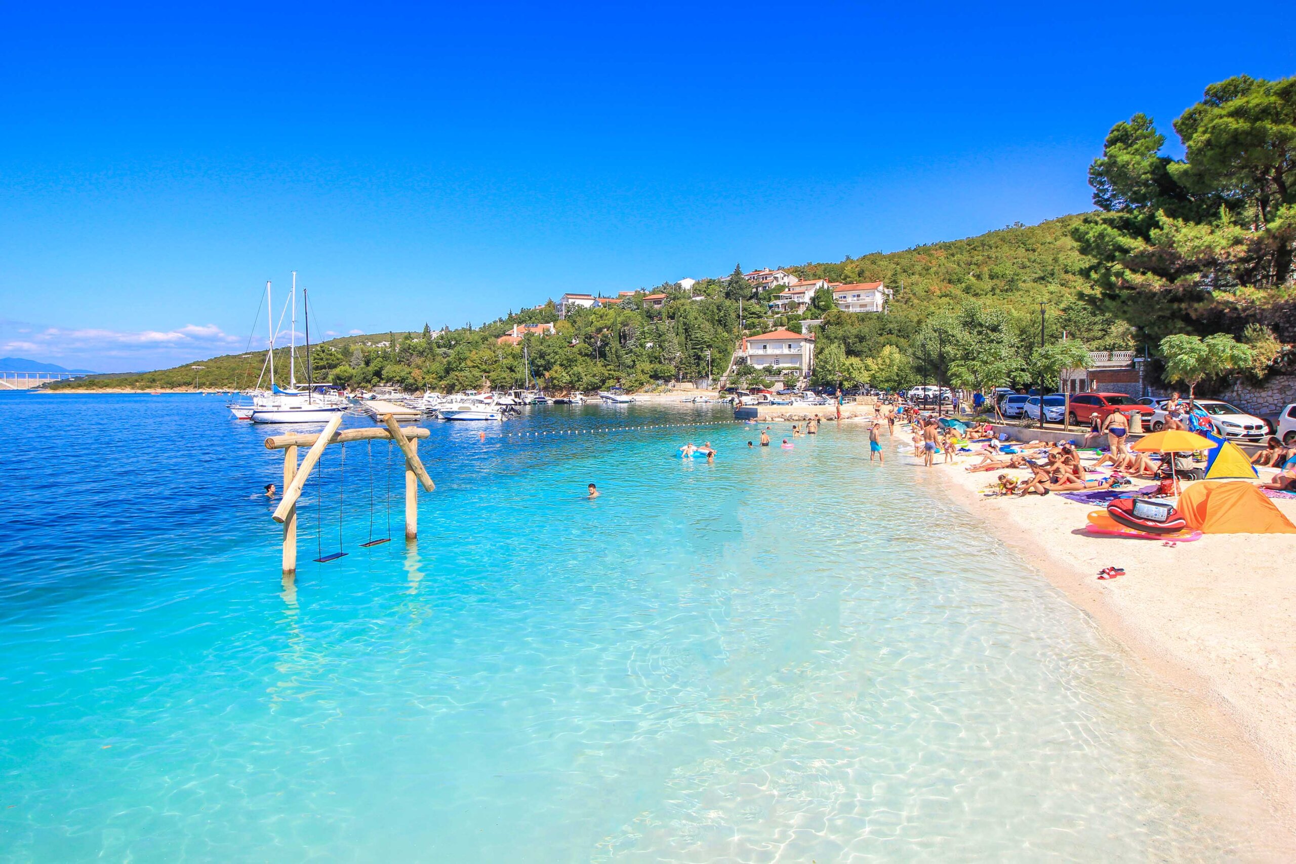 The Lucica Beach is one of the most popular bathing spots in Jadranovo. A real visitor magnet is the sea swing, which has almost become a landmark of the resort. The beautiful colors of the sea, together with the light sand and the island of Krk in the background, create a backdrop straight out of a travel magazine.