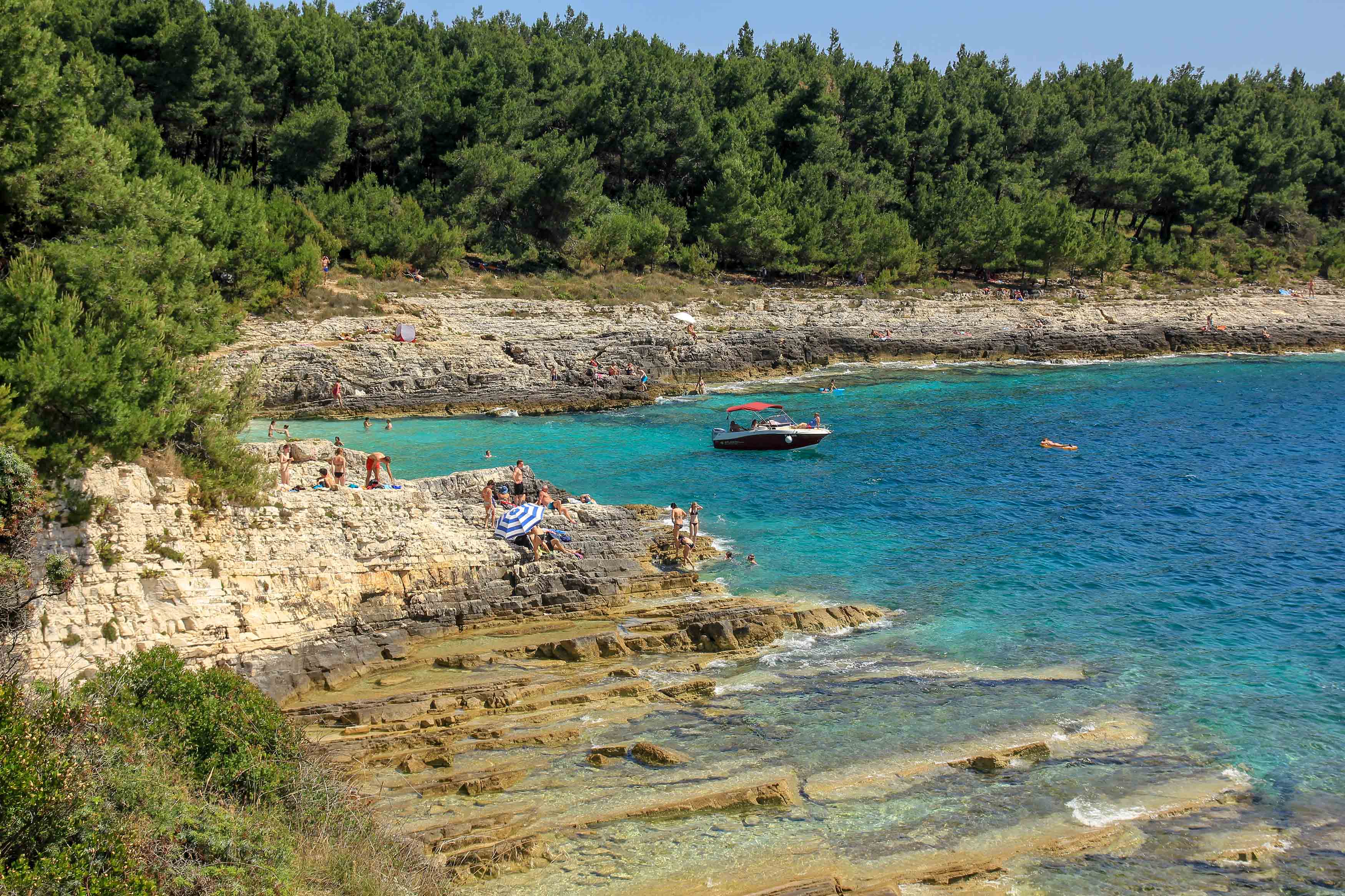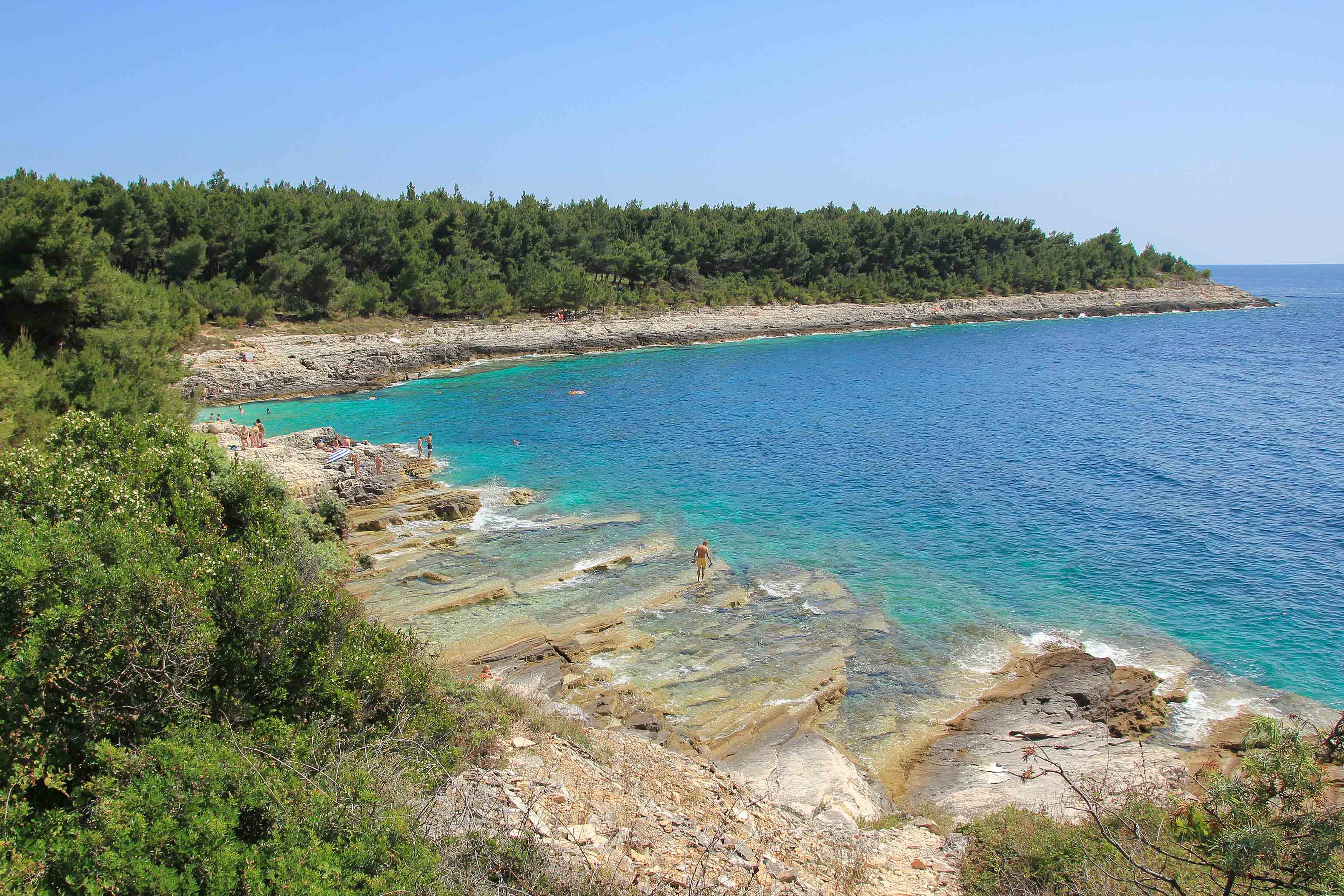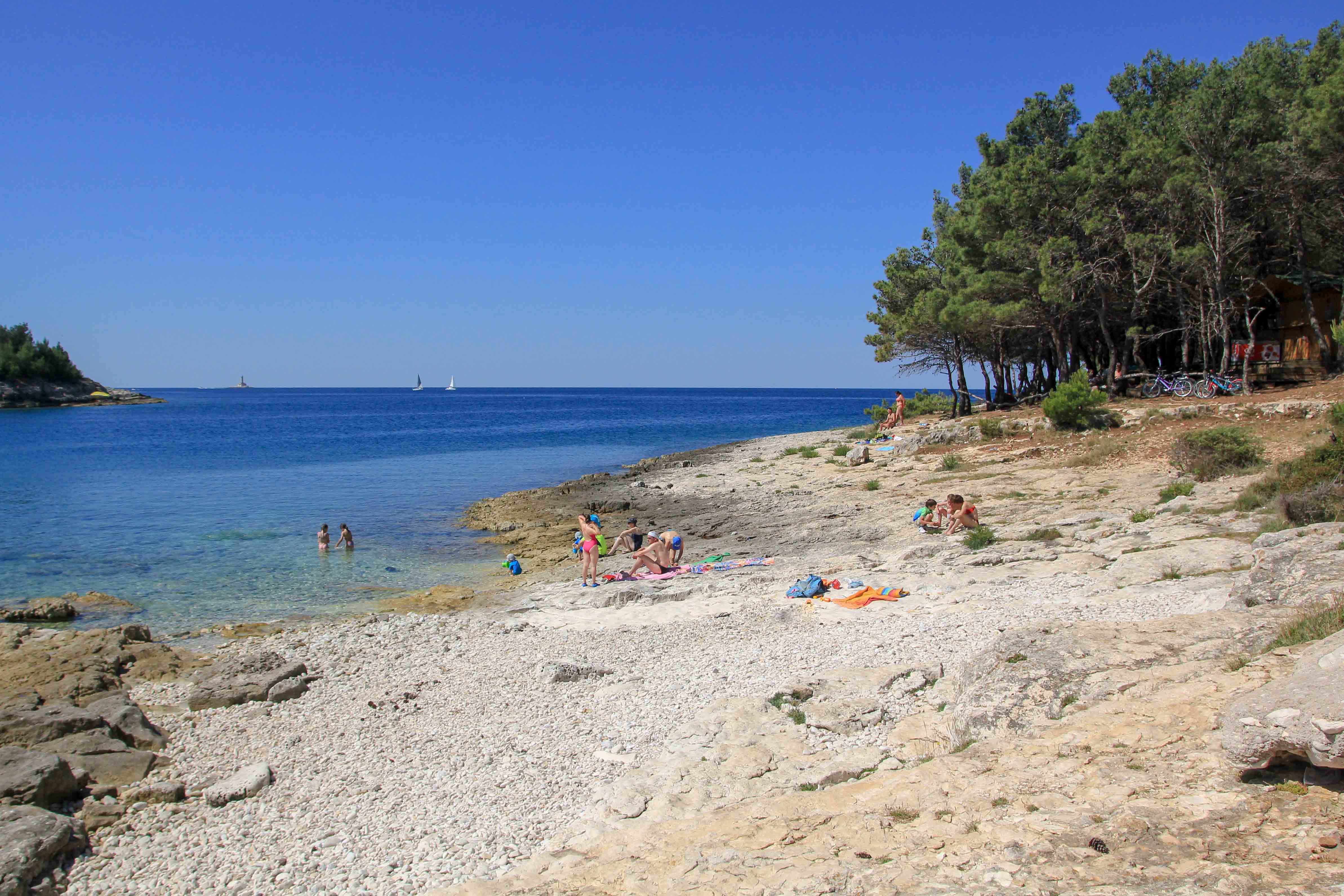 This wonderful beach belongs to one of the most beautiful bays of Kamenjak. It’s a pebble beach surrounded by a Mediterranean-scented pine forest, which provides cool shade on hot summer days. A small tranquil beach bar serves good food, sangria and beer and invites visitors to linger. Along the rugged limestone coast are still fossils from earlier times to find. Fascinating is the dinosaurs trail, a short walk along the bay where you can find footprints of dinosaurs.