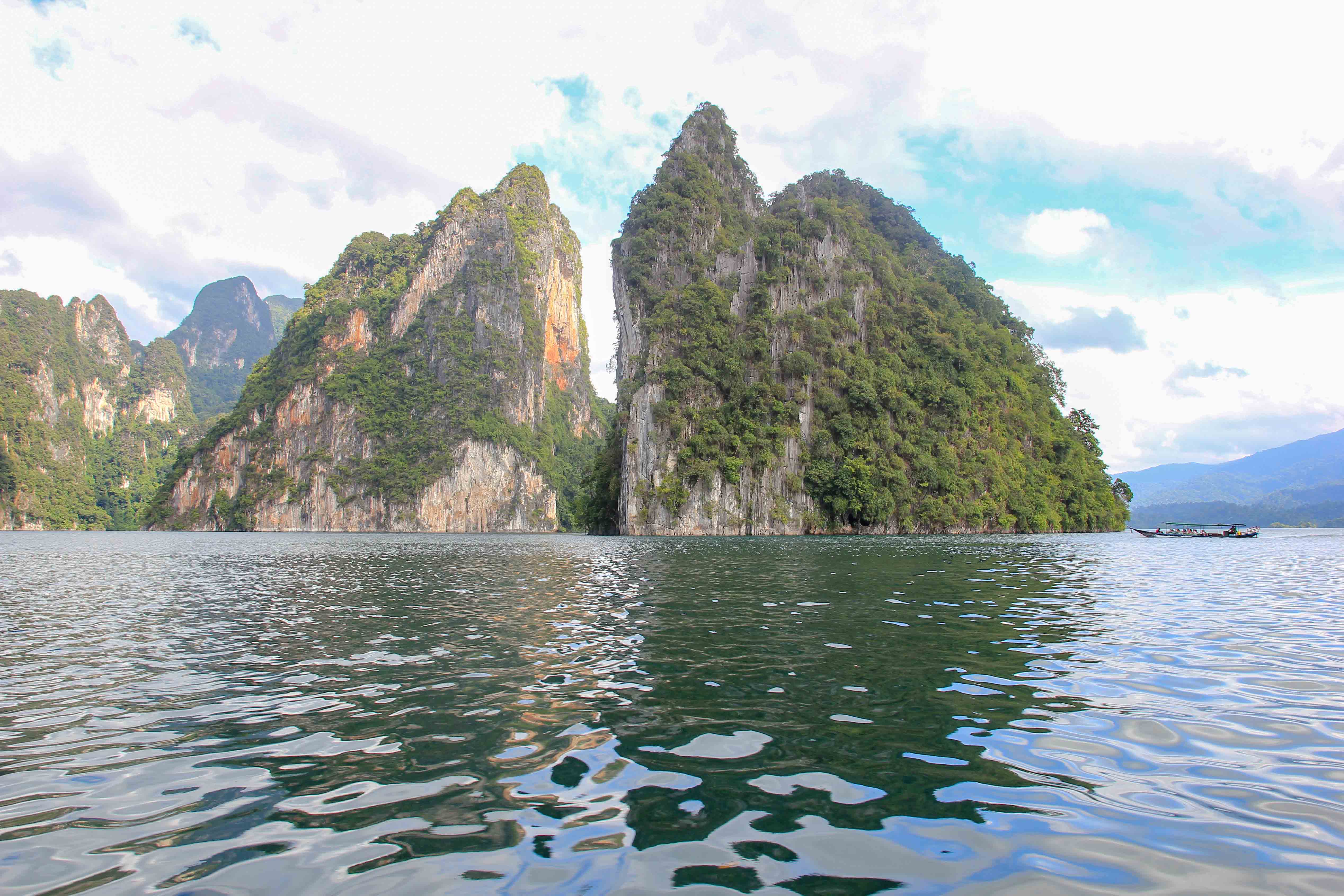 Cheow Lan Lake, or Cheow Larn Lake, is a 162 square kilometer reservoir created in 1982 by the construction of the Ratchaprabha Dam. In order to generate electricity, the river Khlong Saeng was dammed, and a huge area was massively flooded. Today, this beautiful lake in Khao Sok National Park is one of the most important attractions of the region, and a boat tour at the reservoir is almost a must for every national park visitor.
