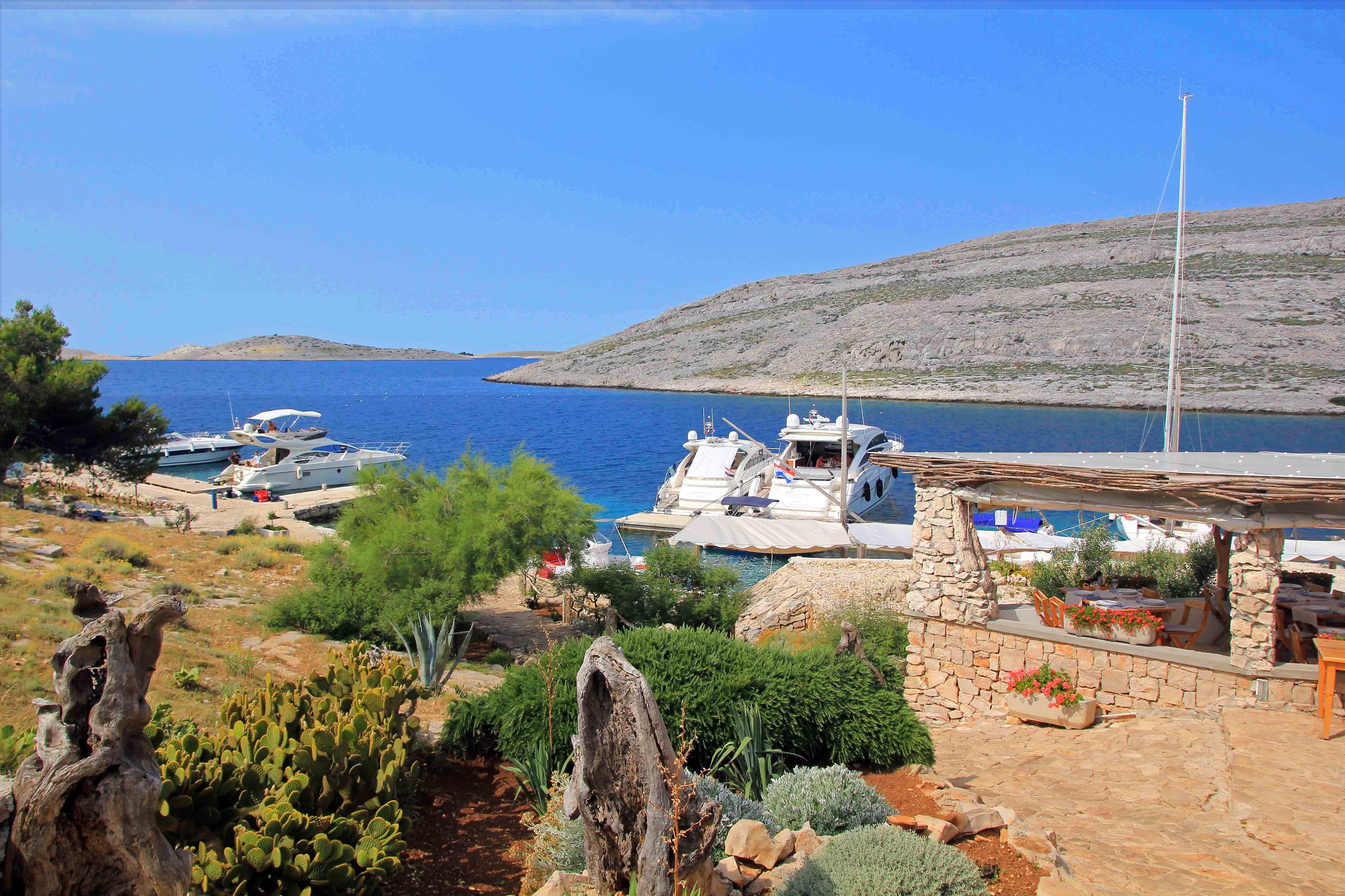 During a trip through the archipelago, visitors have the opportunity to take a break at the various boat moorings and on the jetties of the konabas and restaurants. Not only do these tempt with good food, fresh fish and delicious wines, but the romantic bays there also invite swimming and enjoying yourself. Many of the Kornati islands have one or more cozy restaurants that are worth stopping at. Restaurant Opat, Restaurant Jadra, Restaurant Kod Mare and Restaurant Fasta are just a few of the recommended places to have lunch or dinner.