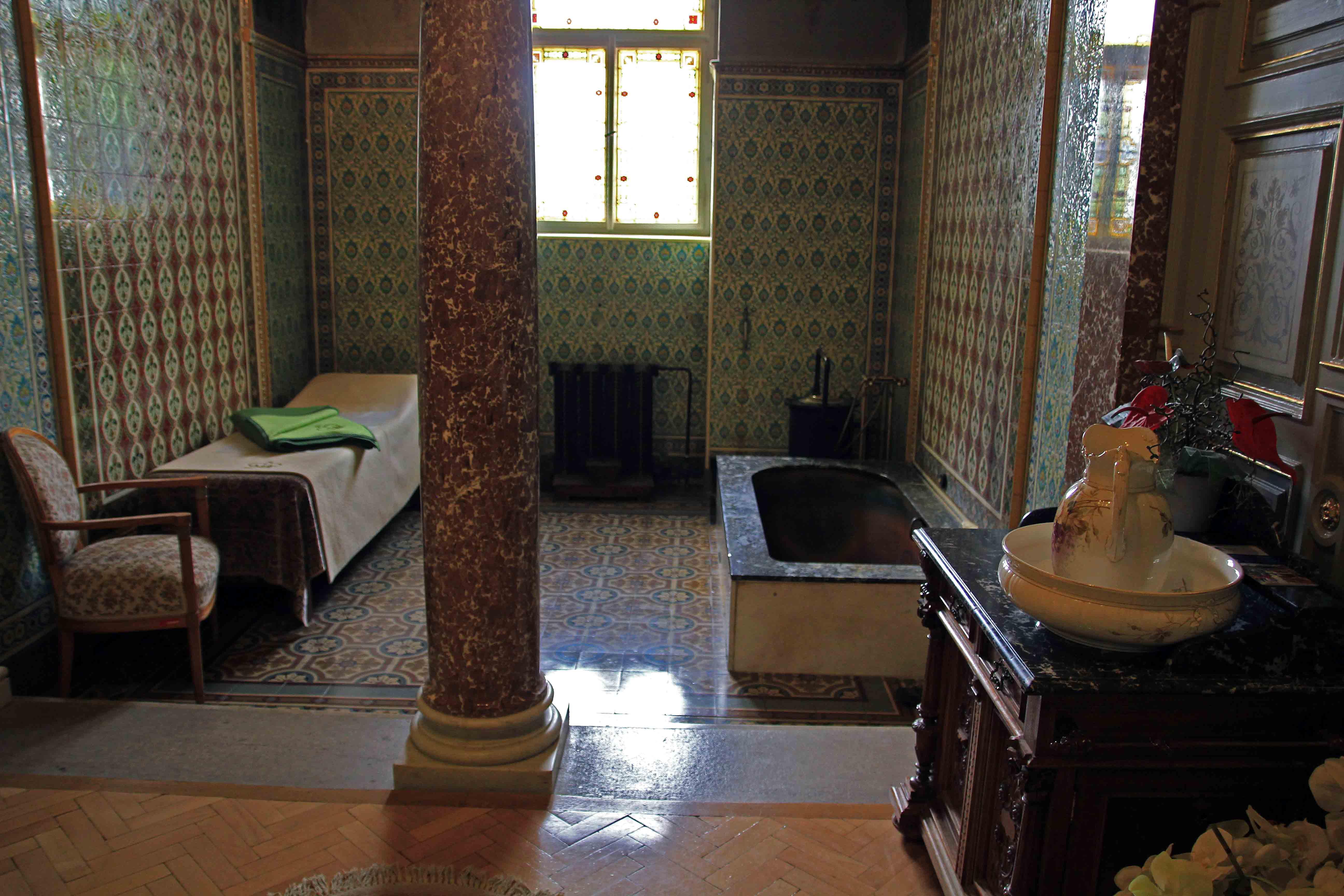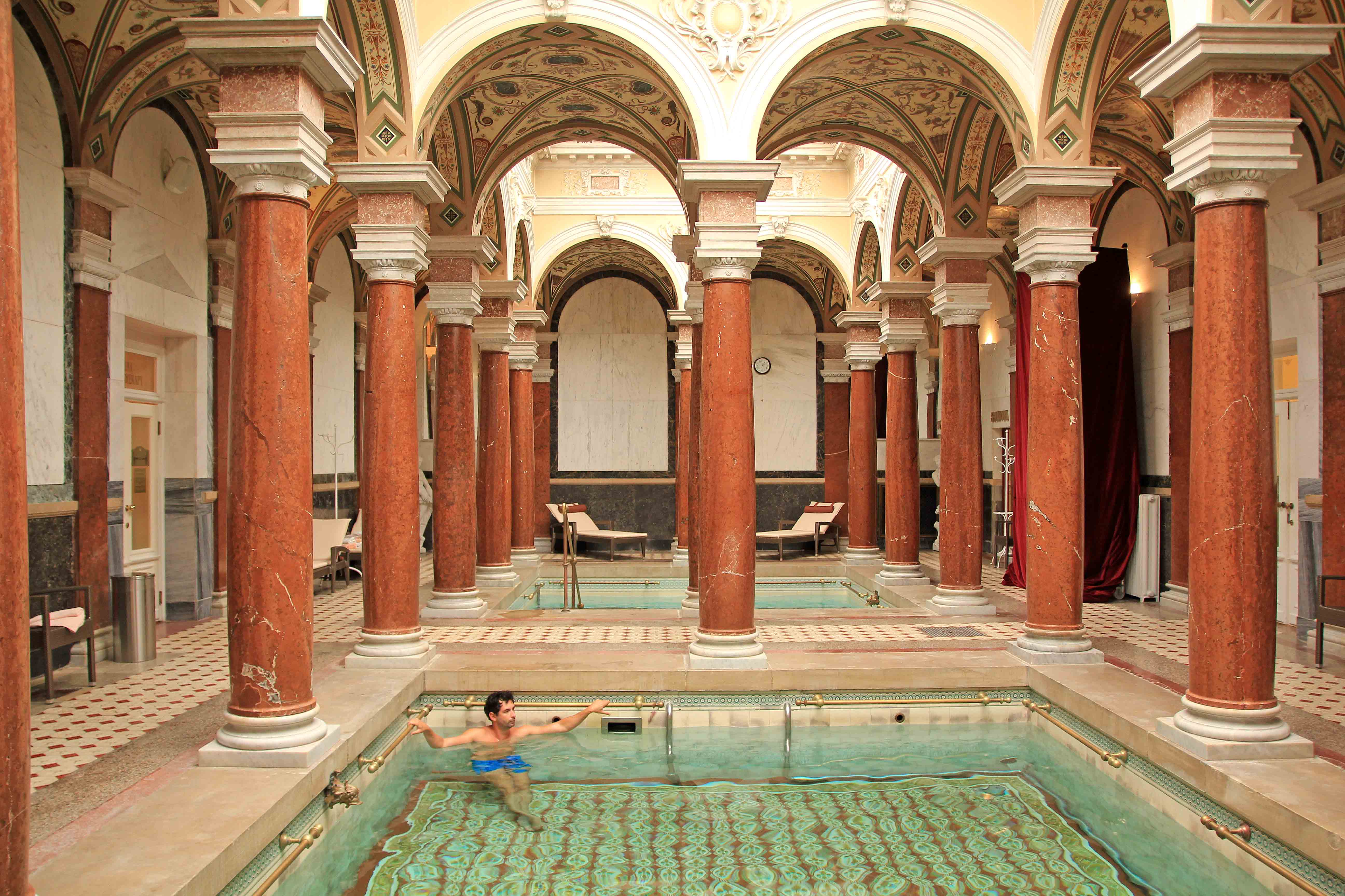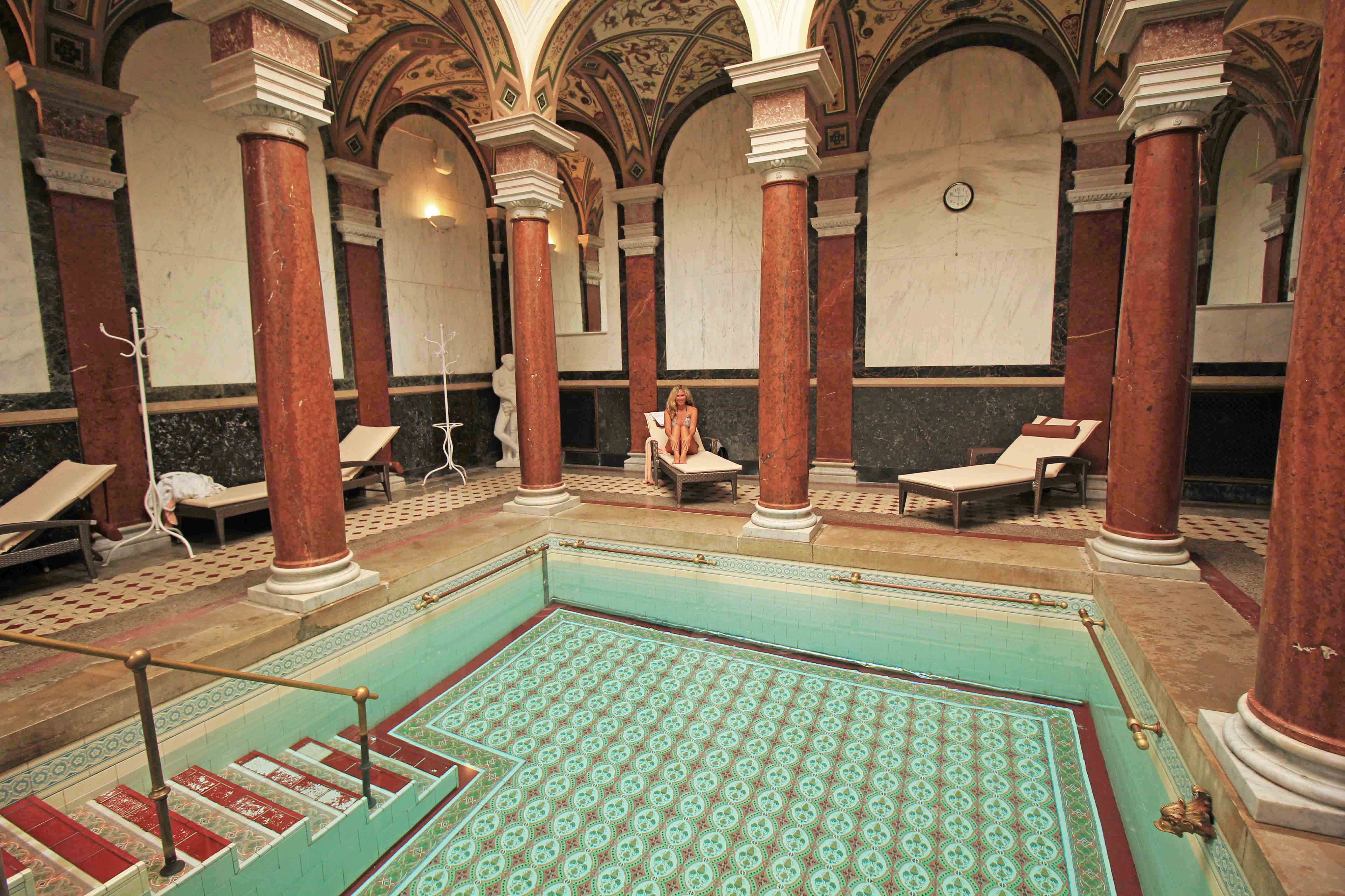 Bathing in Roman style baths with its original red pillars from 1896 was such a great experience!