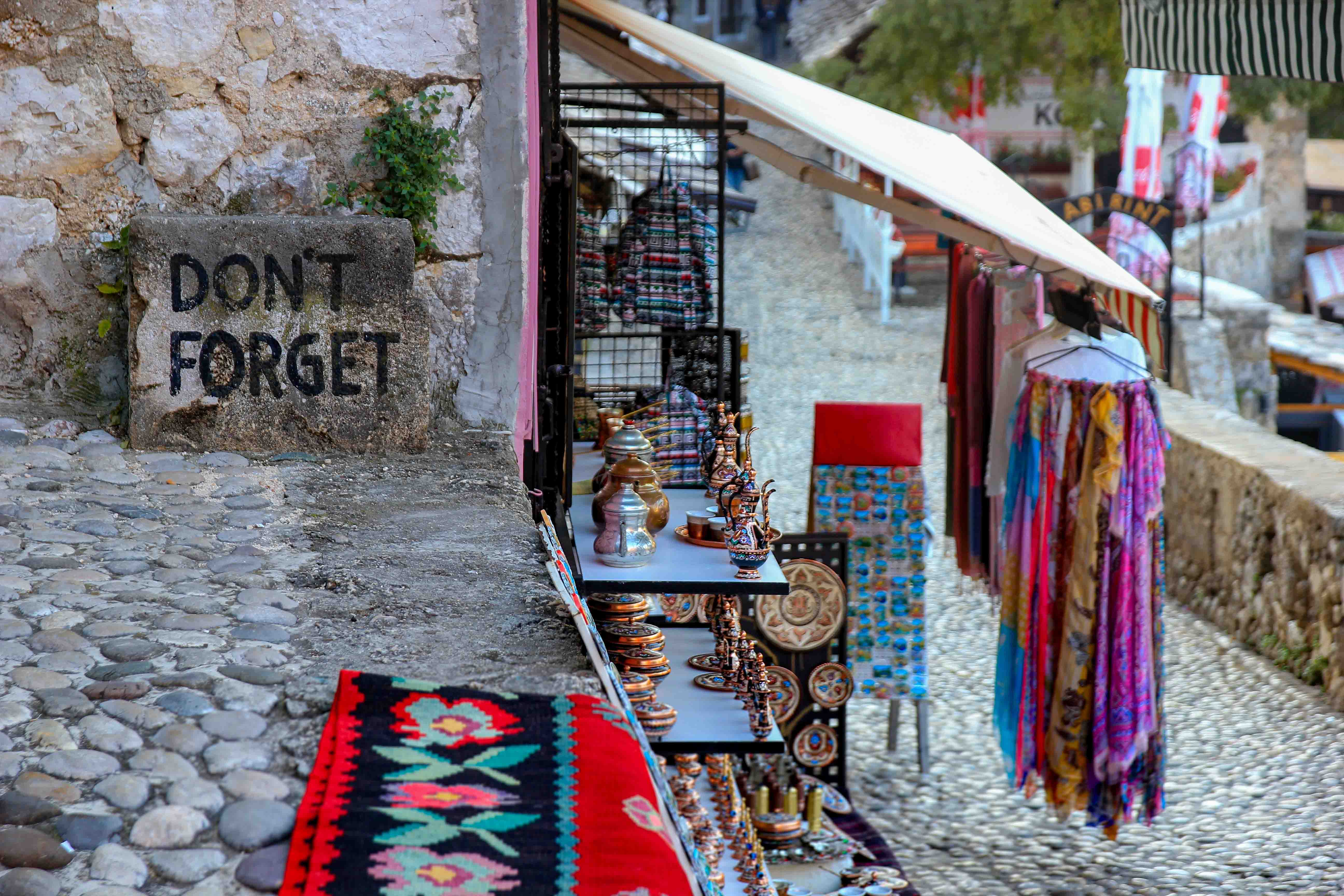 This small stone with the inscription Don’t Forget, stands on the east side of Mostar, not far from the bridge. It reminds visitors of the sad history of the city, the terrible Bosnian war. At that time, not only the famous bridge of Mostar was destroyed, but also the city was divided into a Croatian-western and a Bosniak-eastern part. Neighbors became enemies, and many of the locals lost friends and family in the war. Thus, the Don’t Forget Stone is intended to serve every visitor as a monument to the tragic past of this city.