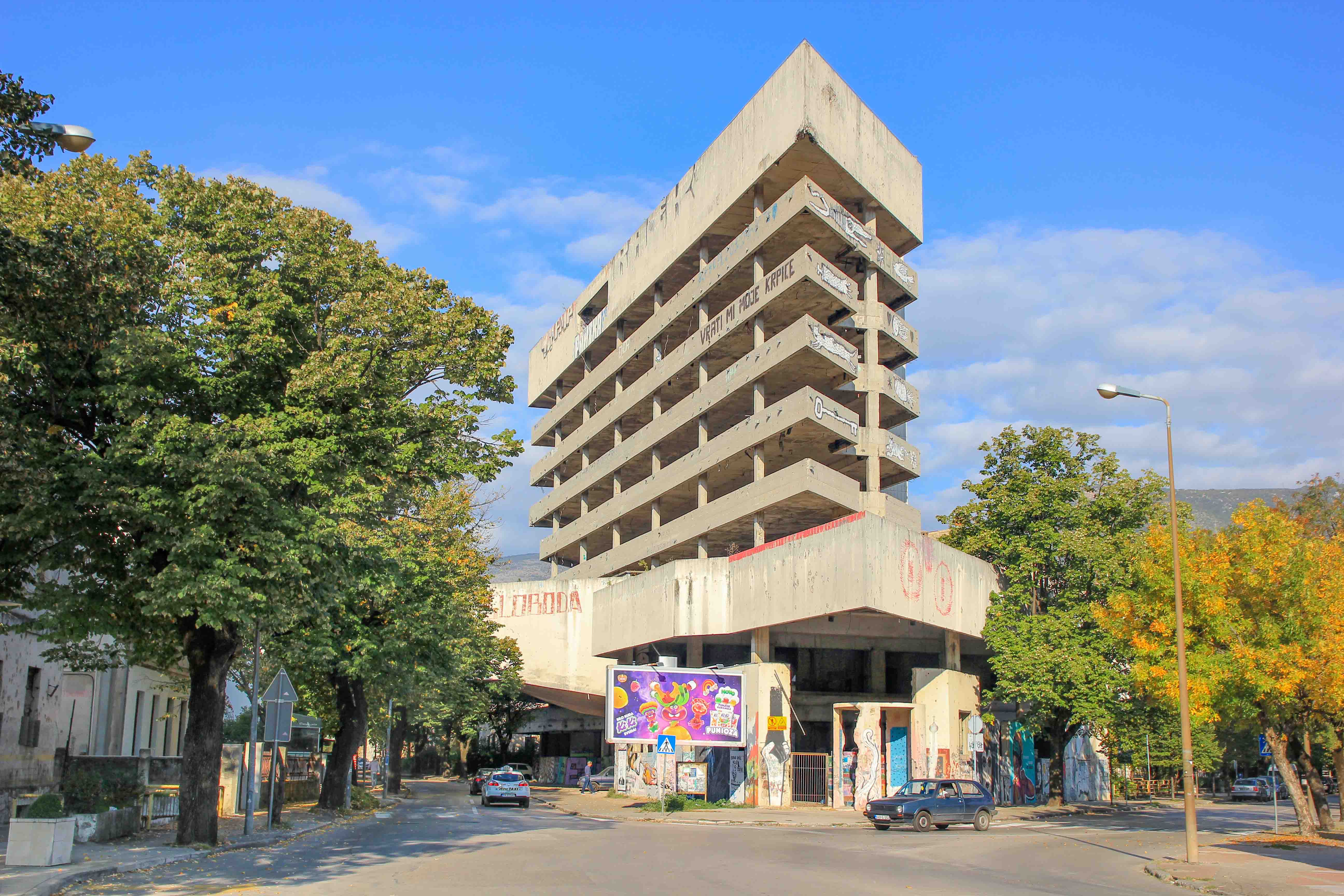 The Spanish Square is located on the western side of Mostar. This little square was built to commemorate the Spanish soldiers who fell in the war. Just behind the square is the green city park. On the other side of the Spanish Square is the beautiful high school, the United World College, which Croatian, Bosniak and Serbian children allows attending a school together. Opposite the Spanish Square is another interesting building, the Snipper Tower of Mostar. This former bank is a remnant of the Bosnian War, which was then used by snipers as a point of view.