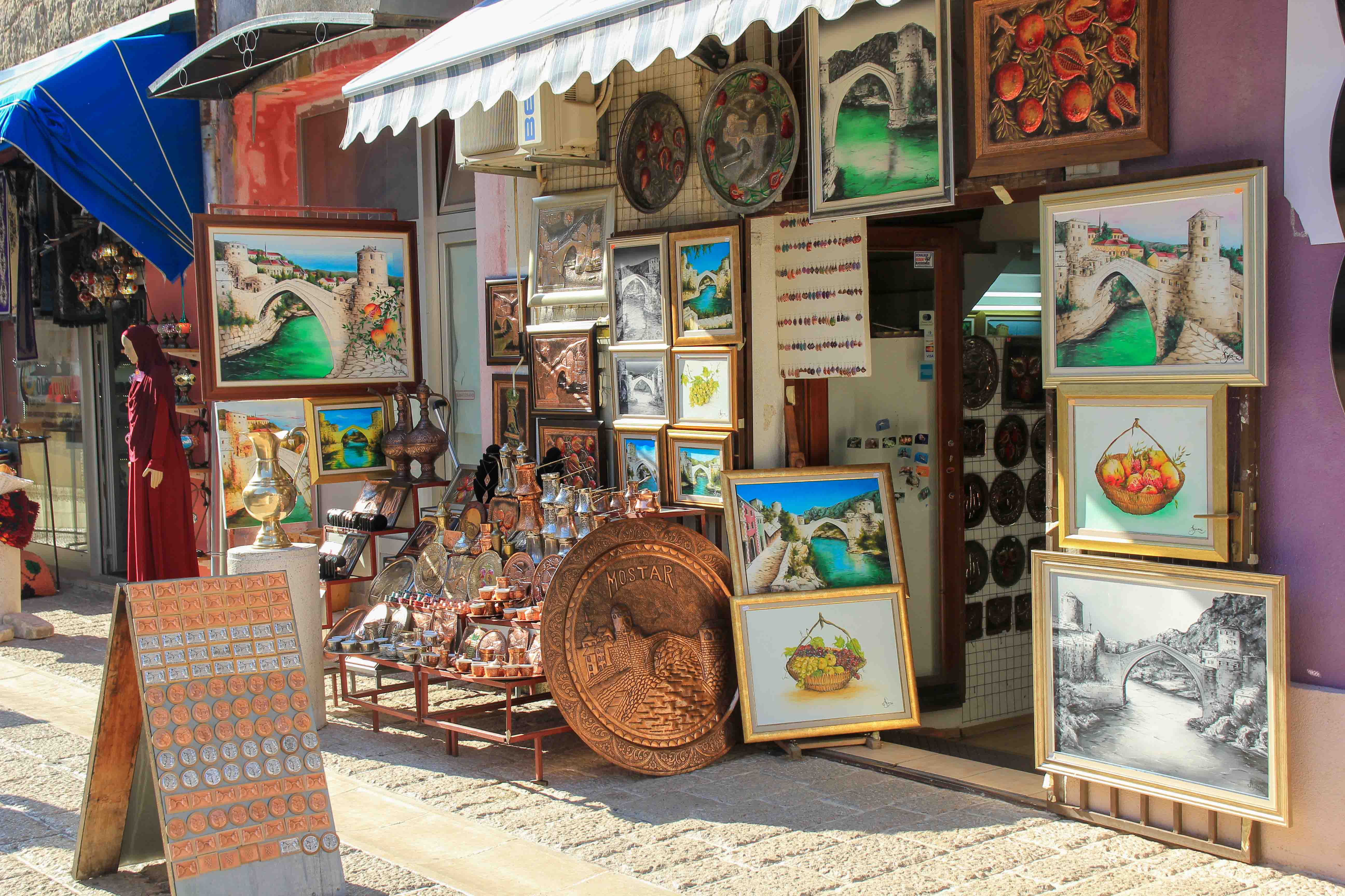 Well worth seeing and another attraction of Mostar is the old bazaar in Kujundziluk, one of the oldest districts of the old town. With more than 500 shops, the bazaar used to be the center of the business community throughout the whole region. Today you can enjoy a pedestrian area with plenty of oriental flair, you stroll past souvenir stalls, filigree crafts, oriental lamps and beautiful galleries. With a bit of luck, you may discover antiques or, now and then, even curious things from the war. In between, at every corner there are plenty of good restaurants, but also cozy cafés which serve delicious Bosnian coffee.