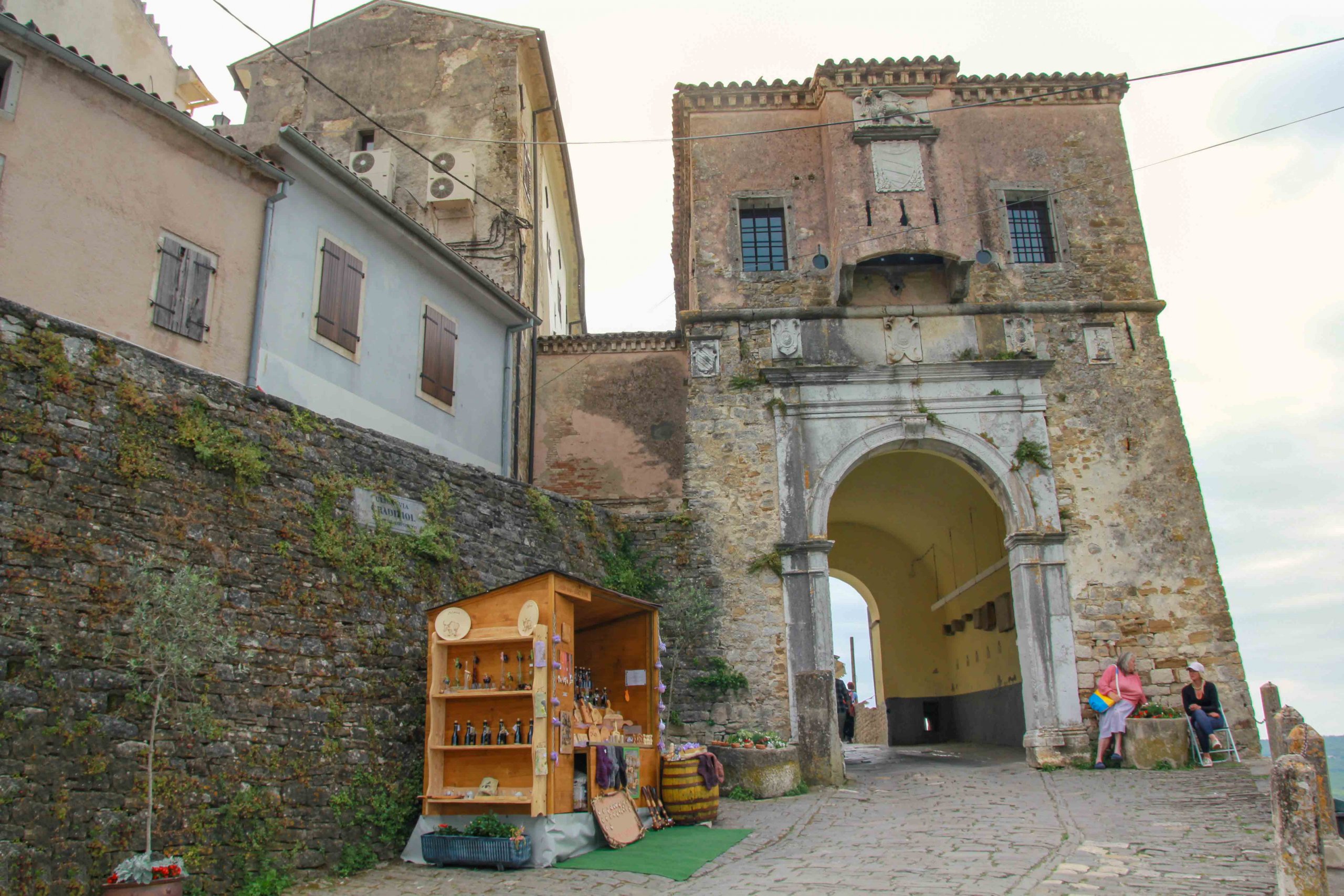 The beautiful historical town gates, some of which date back to the 14th century and others to the 16th century, are among the most important attractions of the village Motovun. They lead directly to the heart of the old town, which is surrounded by an imposing and well-preserved fortress. Particularly impressive is the gate “Toranj novih vrata” on the outer ring of walls, which is decorated with the coats of arms of influential Venetian patrician families.