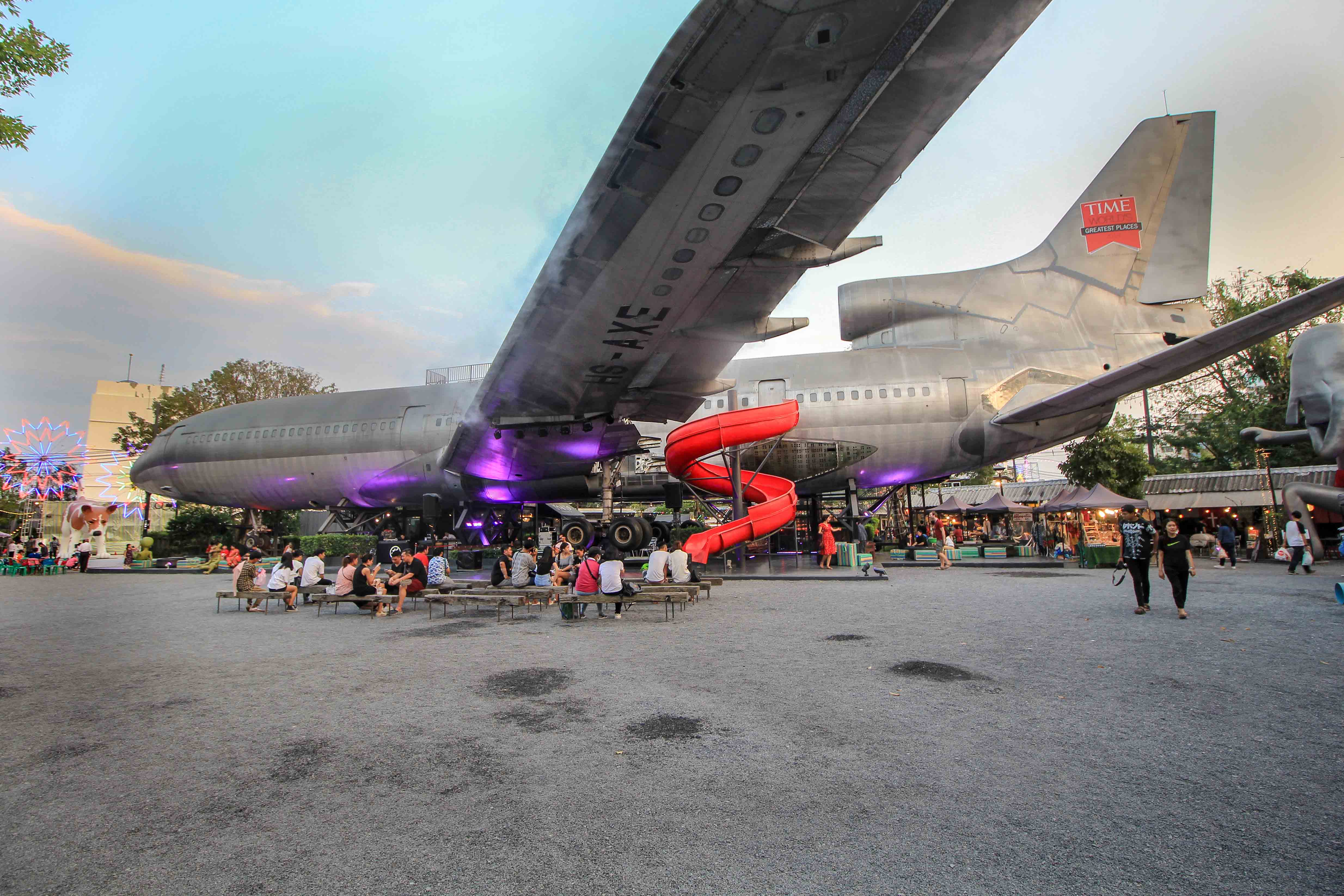 Those who love the extraordinary should definitely visit the Chang Chui night market. Here you can expect a lot of art, interesting galleries, retro design, vintage and hipster stuff but also some delicious street food places and very cool bars. A walk in the grounds will surprise you with gigantic sculptures and ingeniously creative stores made from recycled materials. The heart of the Chang Chui Plane Market and one of the best Instagrammable places in Bangkok is an old airplane standing in the middle of the night market. It is a real eye-catcher and a great place for taking night markets pictures. In the evening, the mainly young and stylish audience meets out at the Night zone, which serves delicious cocktails and various types of draft beer! Visitors don’t only come here for shopping, the unique location attracts the crowds and so you can spend a few pleasant hours just strolling around, eating good food and enjoying cool drinks.