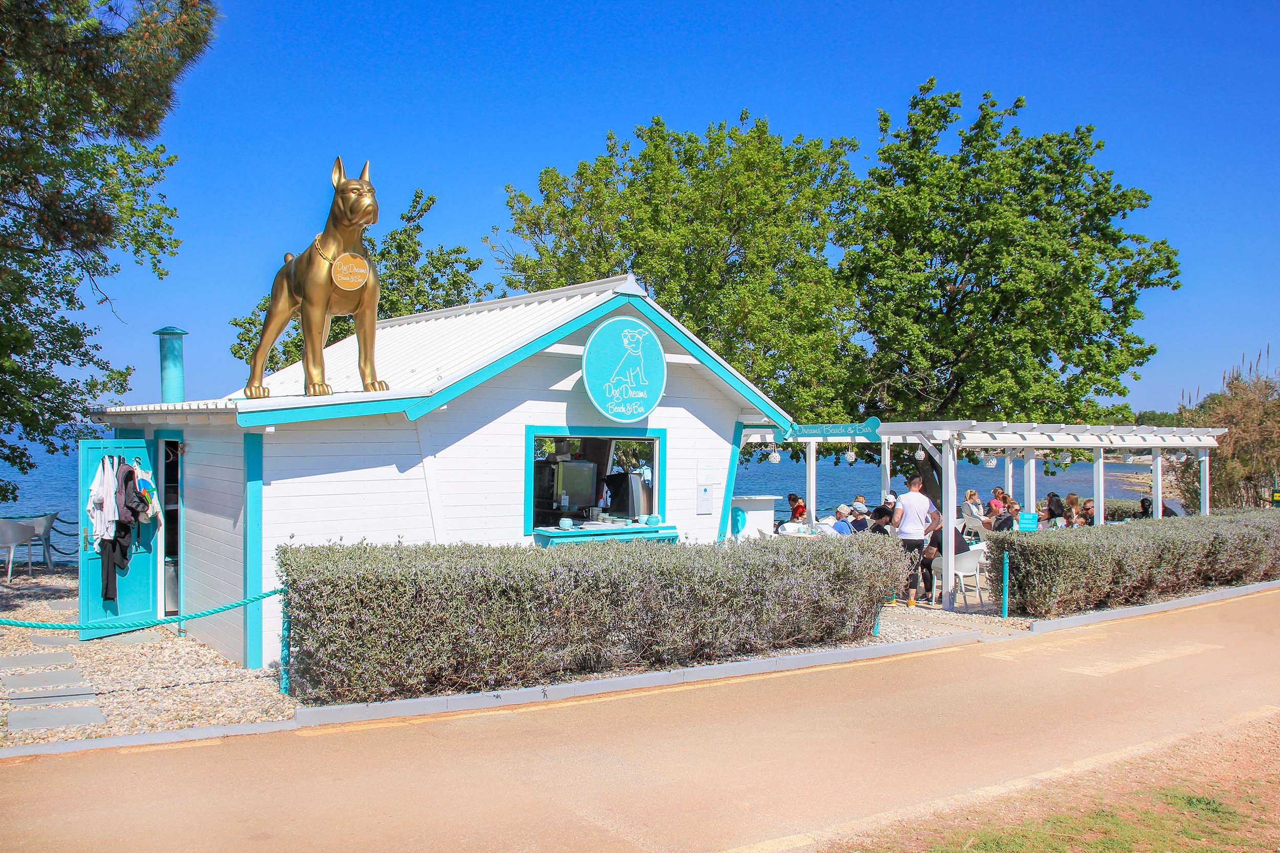 The Dog Dreams Beach is a true holiday paradise for dogs and their owners. Along this picturesque stretch of coastline, dogs can run free, play, and splash in the sea to their heart’s content. The beach also impresses with its peaceful, natural atmosphere and, surrounded by reeds, creates a perfect postcard scene. Everything you need for a relaxing beach day with your furry friend has been thoughtfully provided. There are sun loungers, shaded areas, plenty of water bowls, and even padded dog mats. This beach area also stands out for its cleanliness, excellent facilities, and a stylish beach bar with gorgeous sea views.