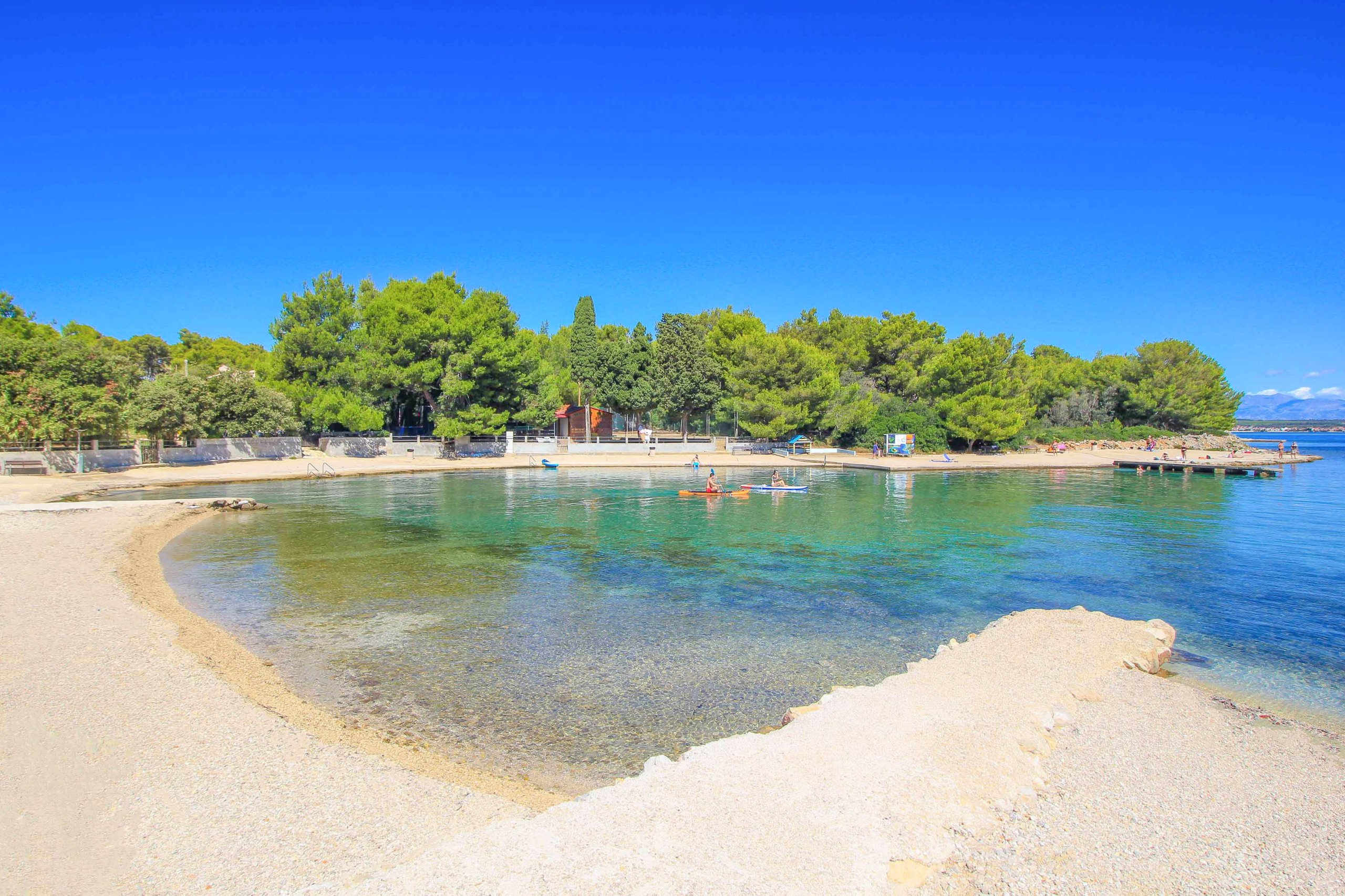 The Banj beach is definitely one of the most beautiful beaches on Pasman and, moreover, a great place for an unforgettable vacation on the island. This charming sandy cove is located in the charming resort of Banj, just a few steps away from the village center and the fishing port. Vacationers love the mix of pebble and sandy beach, where fascinating turquoise sea colors conjure up a dreamlike ambience. A few concreted sunbathing areas also invite to sunbathe and showers as well as cabins are provided. Simply wonderful are the marvelous trees directly on the beach, which provide a Mediterranean ambience and pleasant shady places.