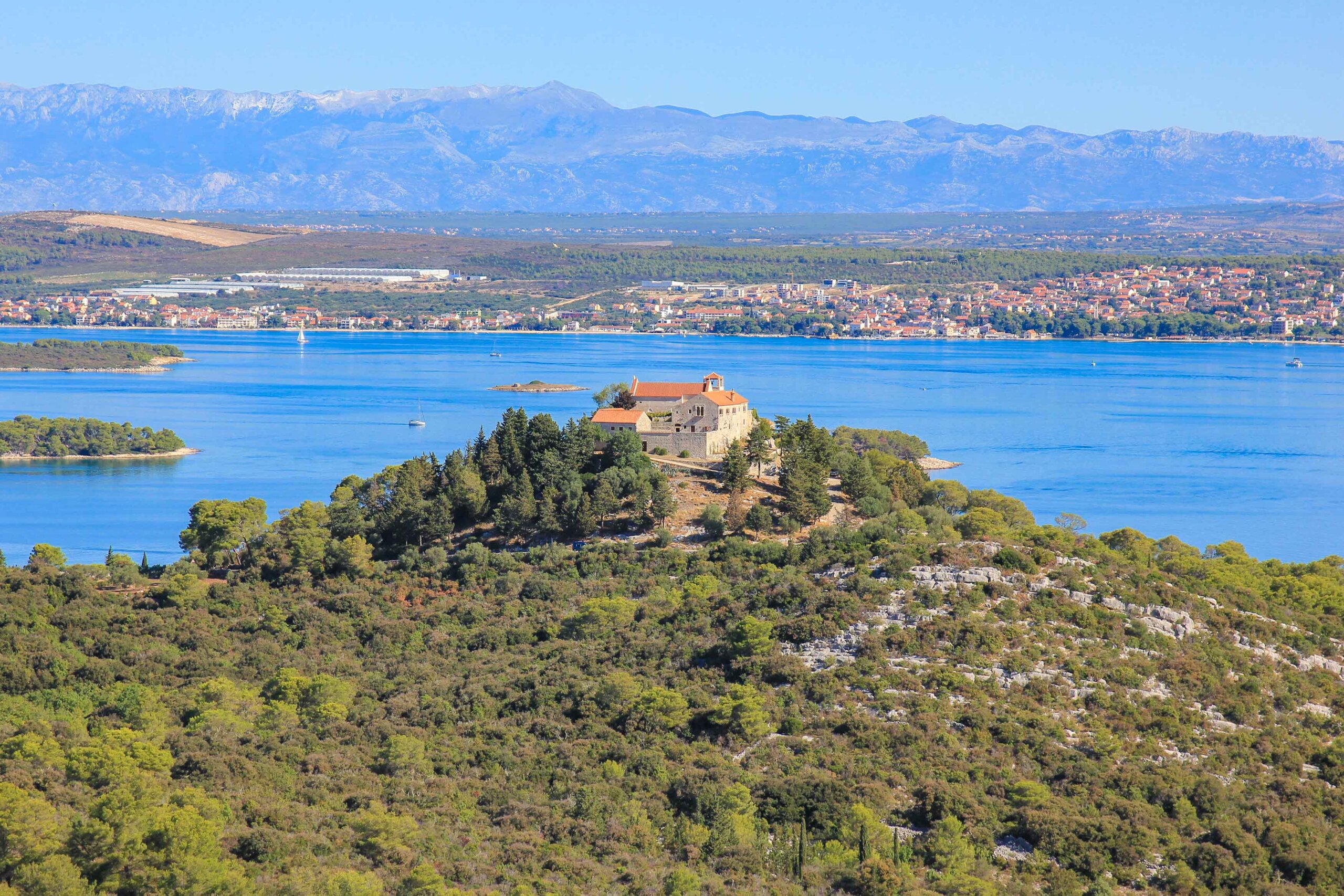 The island of Pasman is located in Dalmatia, near the coastal towns of Zadar and Biograd Na Moru, and can be reached from the mainland via the Pašmanski Channel in about 20 minutes by ferry. With a size of only 60.11 km² and with about 3,400 inhabitants, it belongs to the smaller Croatian islands. Only one main road leads from the Ždrelac bridge in the north for about 20 kilometers to the village of Tkon in the south. On a tour of the island, Visitors are amazed by the beautiful landscape, characterized by olive groves, vineyards, fig trees and mountains, which give Pasman a particularly charming Mediterranean flair.