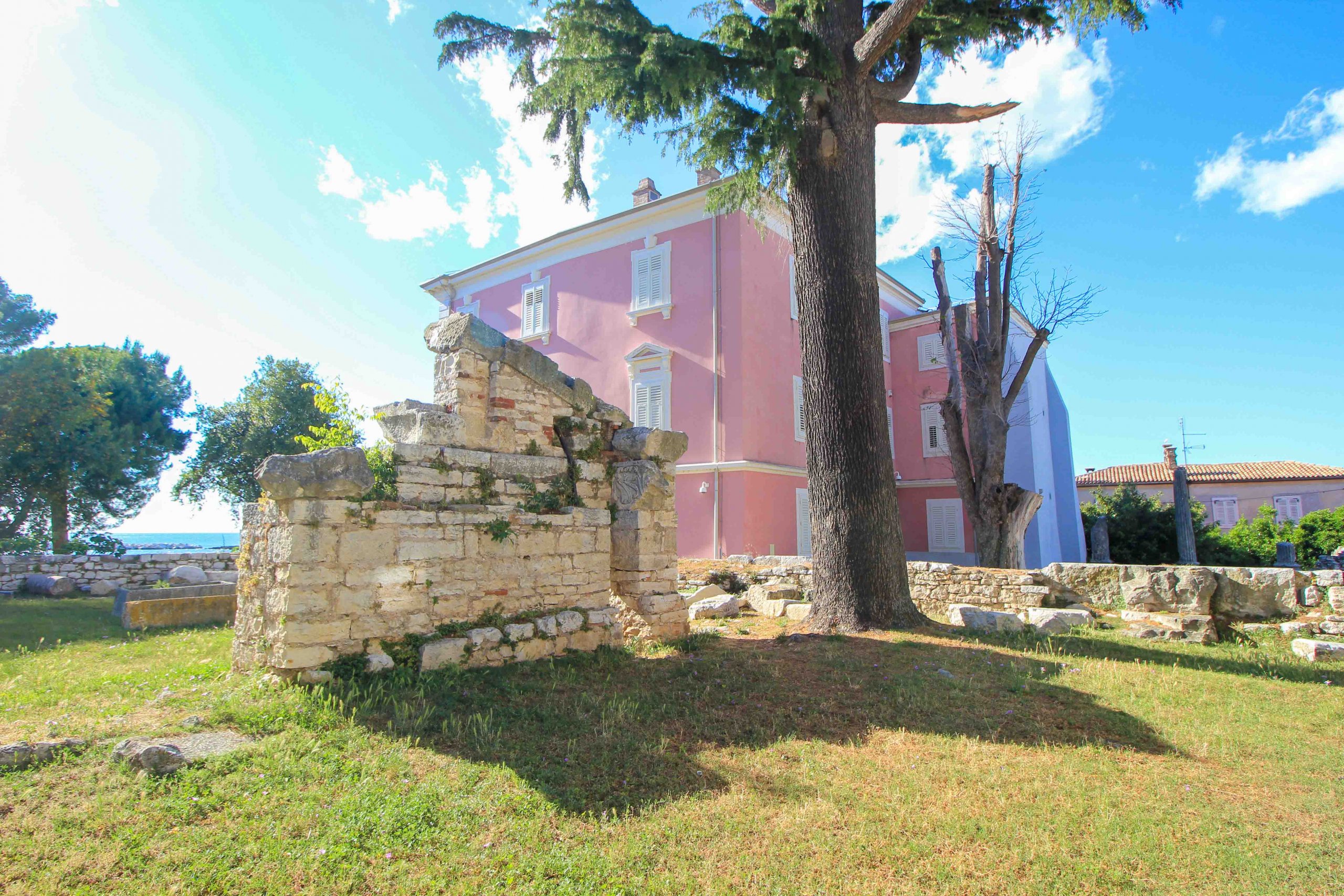 One of the most interesting things to see in Porec is the Romanesque House in the old town. It dates back to the 13th century and is one of the oldest houses in the city. Located near the square Marafor, this popular photo motif can hardly be missed during a stroll through the city. Once there was a stable on the first floor and a large living room with a fireplace on the upper floor. Today, there is a small ethnographic exhibition on the 1st and 2nd floor, which is open to visitors during the summer months.