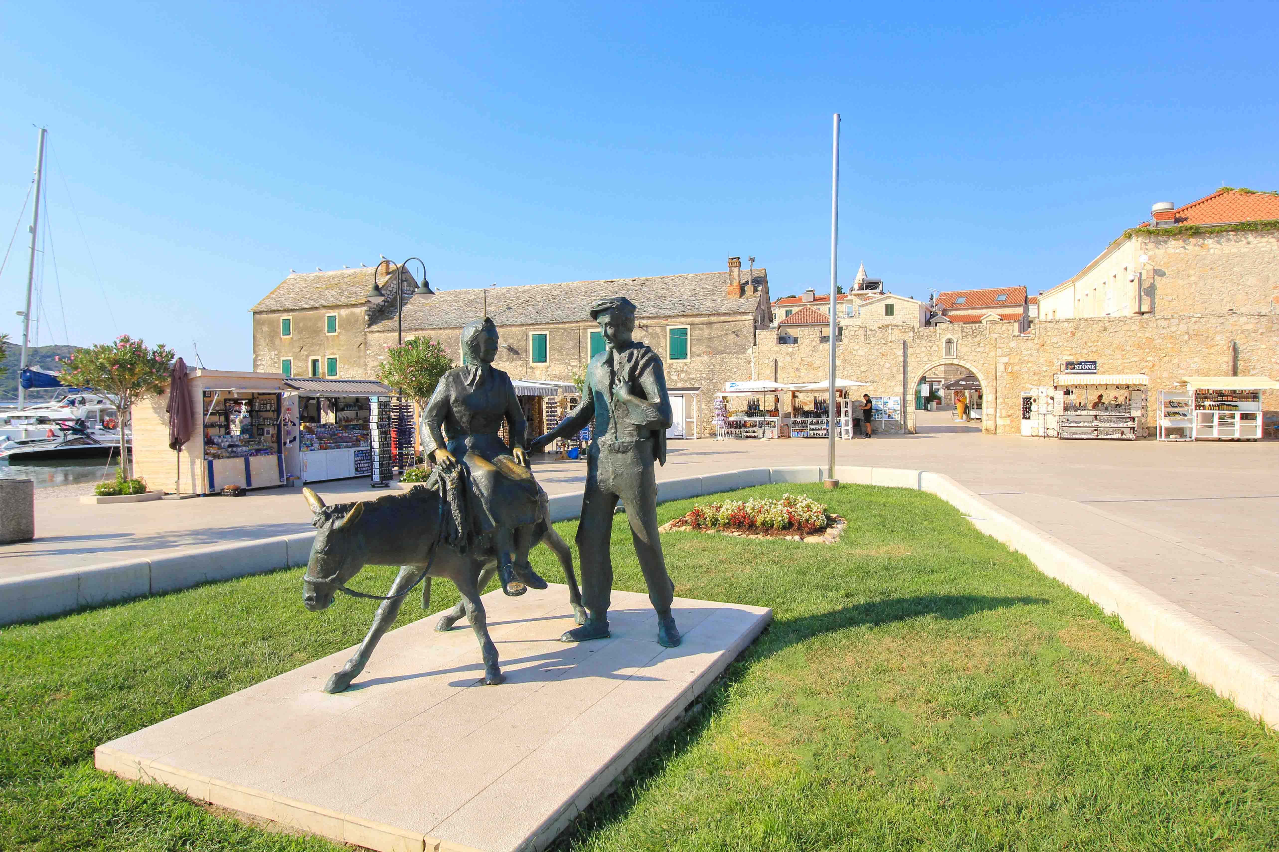 In the alleys of the old town of Primosten, on almost every corner you will find something nice to discover. The best way to start the city tour through this very charming Dalmatian town is at the old city gate. The old town was once on an island and was then connected via a bridge, later via a dam, with the mainland. After that, the picturesque stone gate was built as the entrance to the old town.