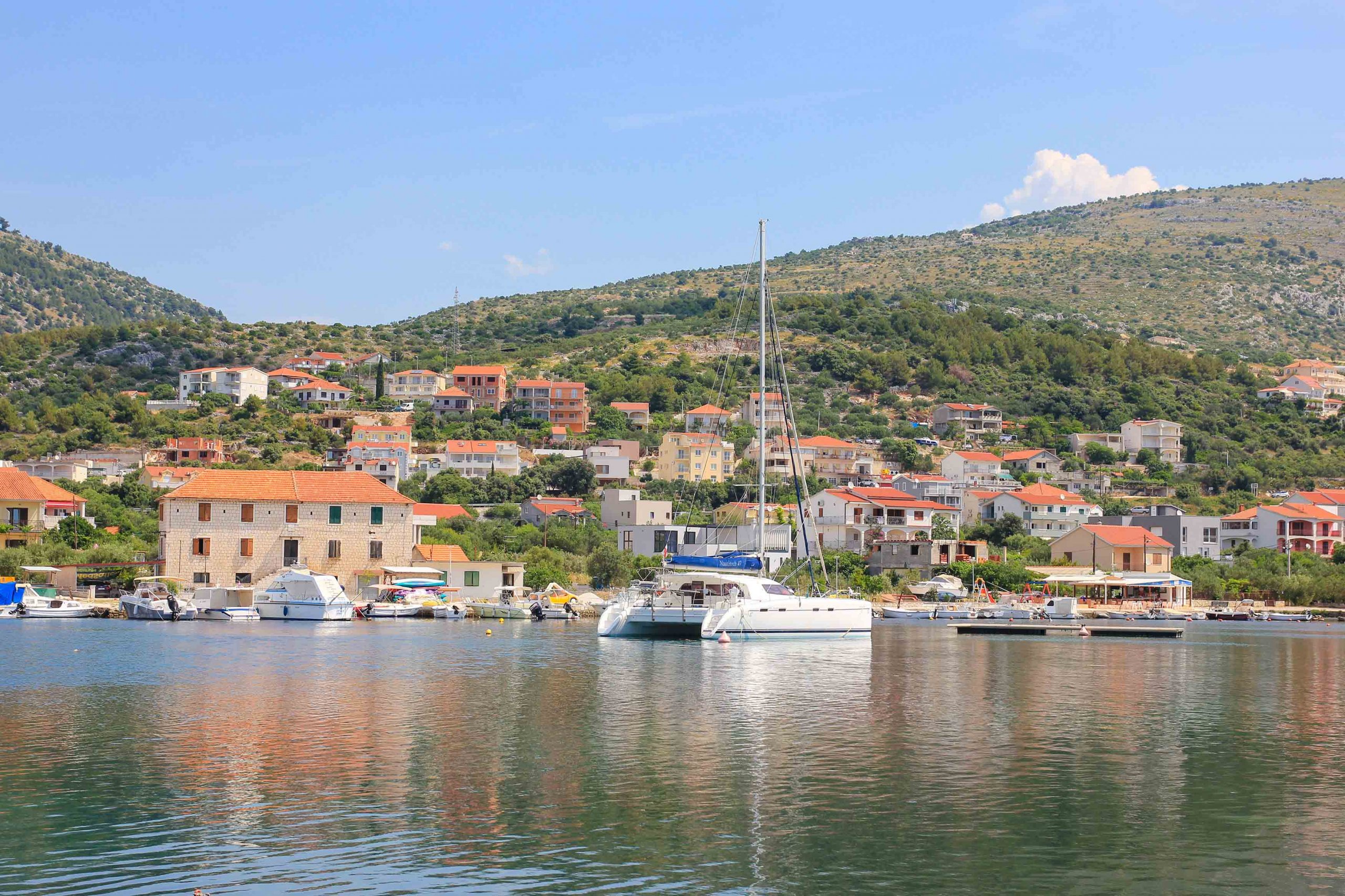 If you don’t want to go to Trogir by car, you can take a taxi boat from Seget Vranjica. In the high season, a small boat operates regularly to the UNESCO old town and back.