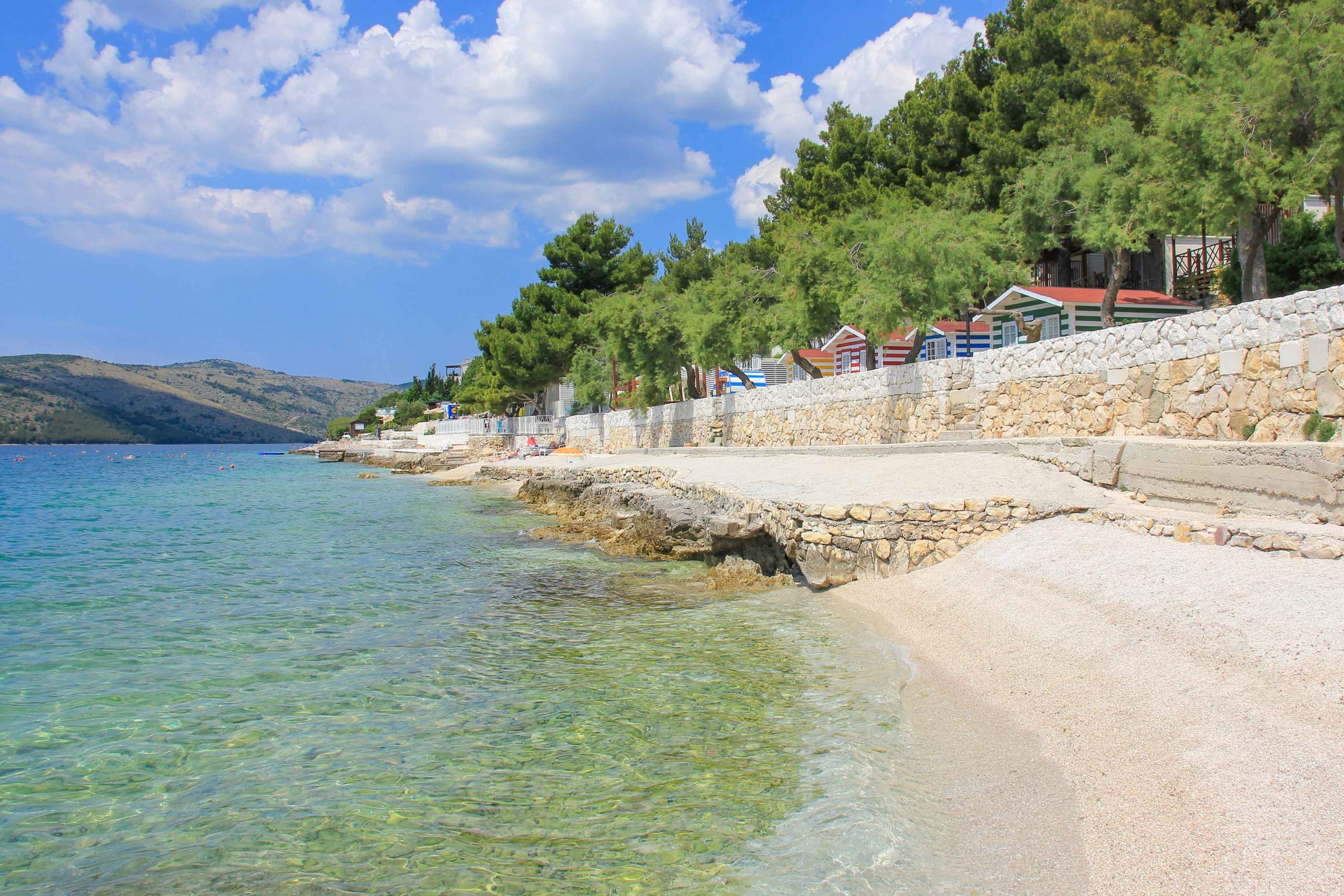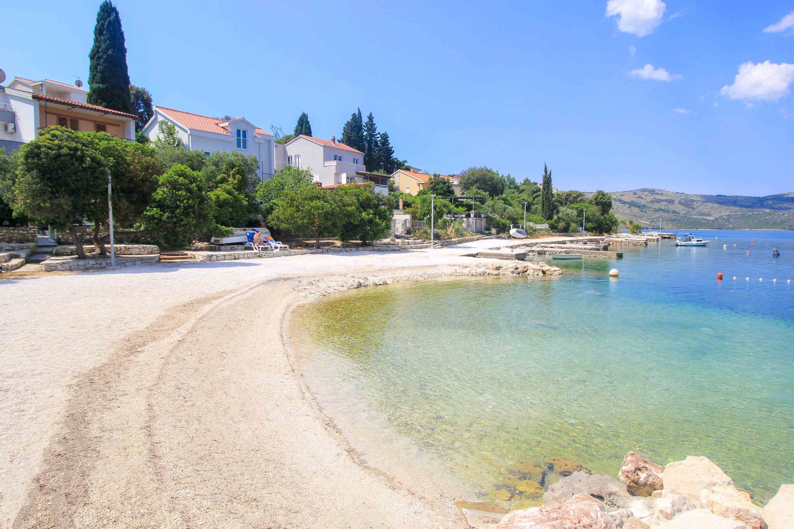 When vacationing in Seget Vranjica, one enjoys a fabulous selection of magnificent beaches. Along the coast, there is a wide variety of great swimming options in a magnificent setting. Most of them are fine, light pebble beaches, but there are also stone beaches that score with excellent sea quality and turquoise water colors. Here is a summary of the best beaches of Seget Vranjica at a glance: