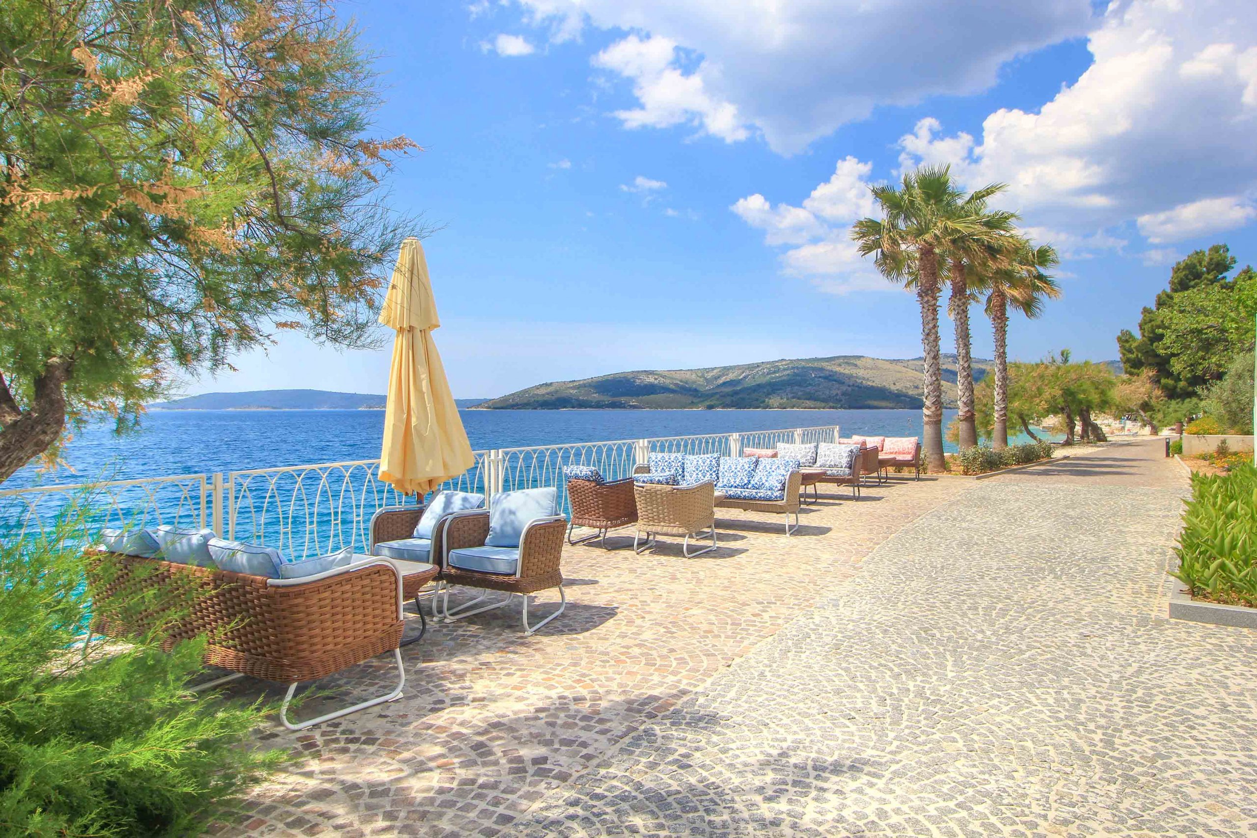 Very romantic is also the small harbor and the promenade decorated with palm trees, which will make you go on long walks. Right in the center, you will find some really cozy cafés and good restaurants serving fresh fish and Dalmatian grilled specialties. If you want to go out in the evening, it is best to go to the nearby town of Trogir and enjoy a lively nightlife with countless hip bars and restaurants.