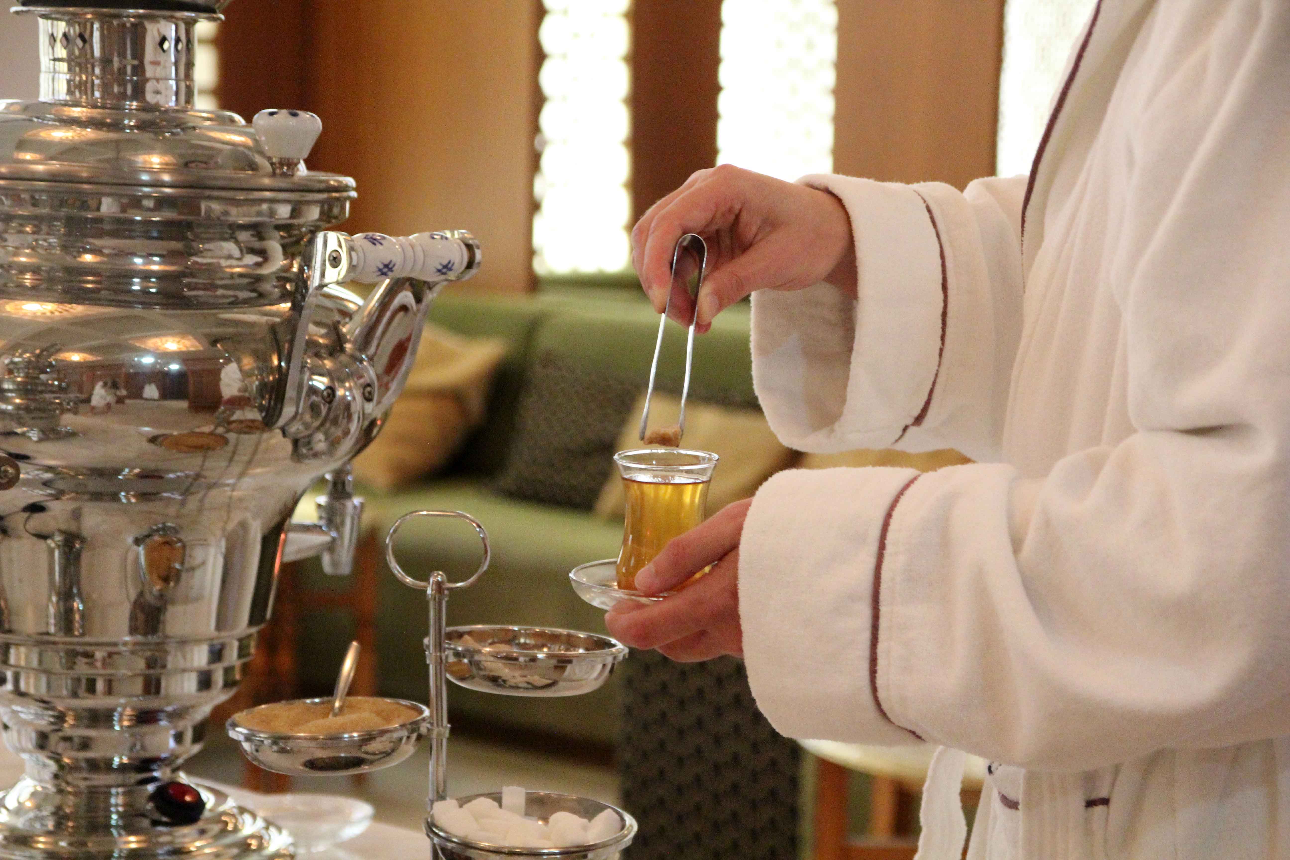 Don´t miss to visit the beautiful Hamam with its warming navel stone and the steaming Serail-bath. With only 4 Euro you will get a peeling glove and a healthy soap to peel your body. Enclosing the Hamam you are invited to take a rest inside the beautiful oriental lounging area and have a lovely cup of apple tea. This sofa area is so relaxing, a perfect place to stay for a while and enjoy.