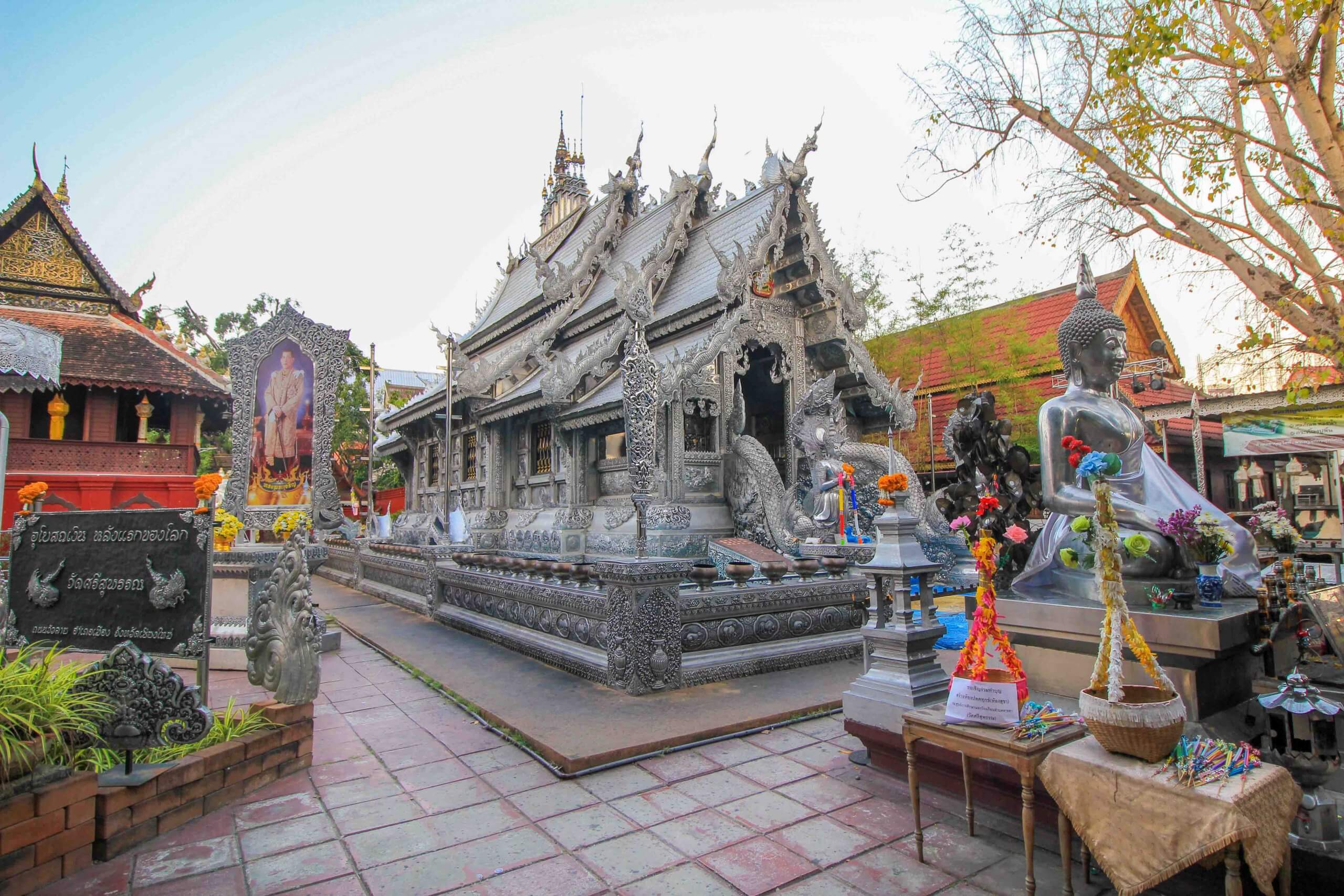 The Silver Temple, also known as Wat Sri Suphan, is a highlight that should not be missed on any city walk through down town. This attraction is located in the center of Chiang Mai, just outside the city walls, just off Wualai Road. Particularly spectacular there is especially the rich, silver ornamentation, which gives this temple an impressive appearance and has given it the nickname Silver Temple. The interior of the building is also worth seeing, but unfortunately, a visit is only possible for men.