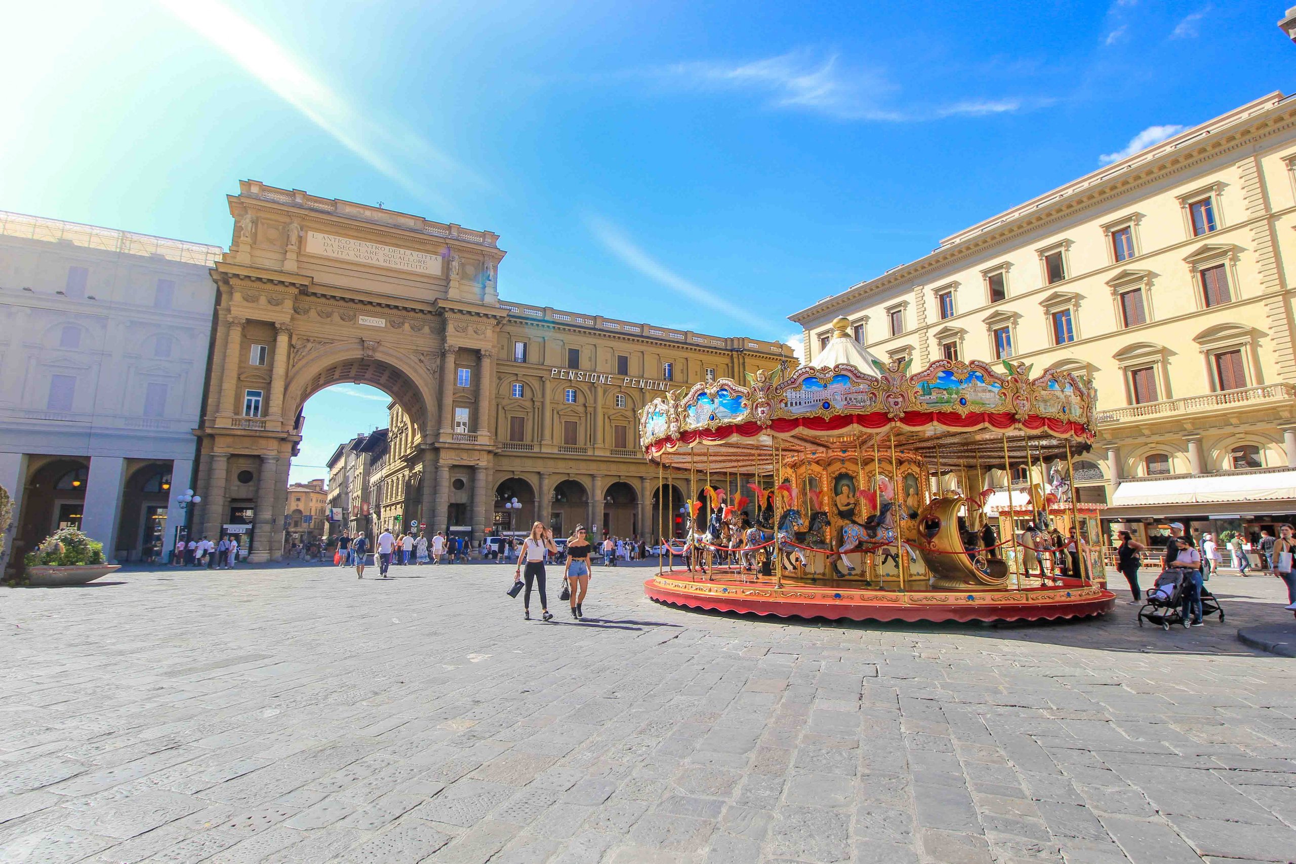 Another beautiful square in Florence is Piazza della Repubblica in the heart of the old town. It was already the center of the city in the Roman era, and later in the Middle Ages it was home to Piazza del Mercato Vecchio and the Ghetto. During any time of the year, spring, summer, autumn and winter, there is always something going in Piazza della Repubblica. This attraction in Florence is also so family friendly and there are many fun things to do. Artists, painters, bubble artists and even a red glittering merry-go-round radiate a lot of nostalgic charm here. In the evening, there is always live music, which is best enjoyed in the surrounding restaurants and cafés.