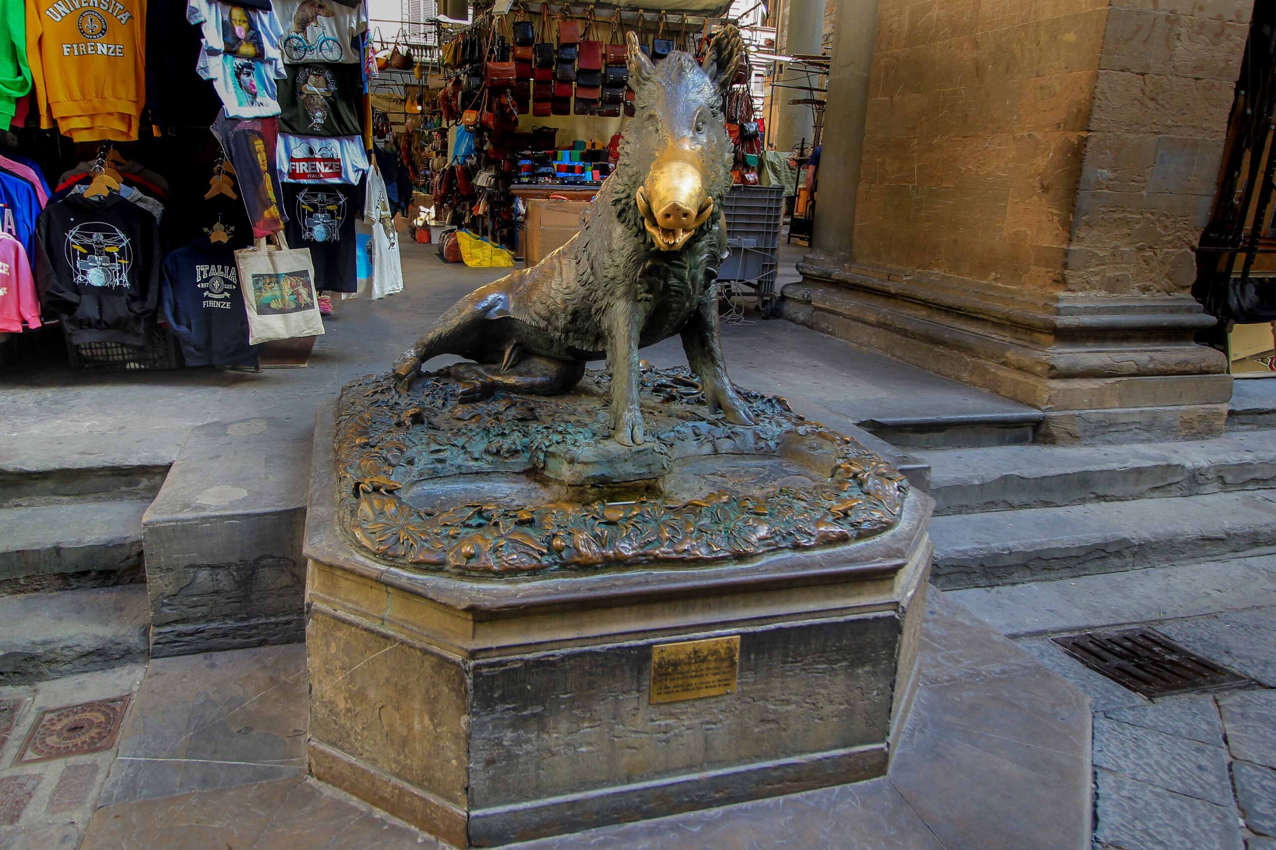 The Fontana del Porcellino, or Piglet Fountain, is definitely one of the most famous tourist attractions in Florence. The original bronze statue, which actually represents a wild boar, is made of marble and is currently on display in the Uffizi Gallery. The replica, however, is one of the most recognizable sculptures in the center of Florence and therefore a popular photo spot. This unusual attraction is slightly hidden in the Loggia del Mercato Nuovo, a small leather goods market not far from the famous Ponte Vecchio. A special feature is the boar’s nose, which is said to bring good luck when touched.