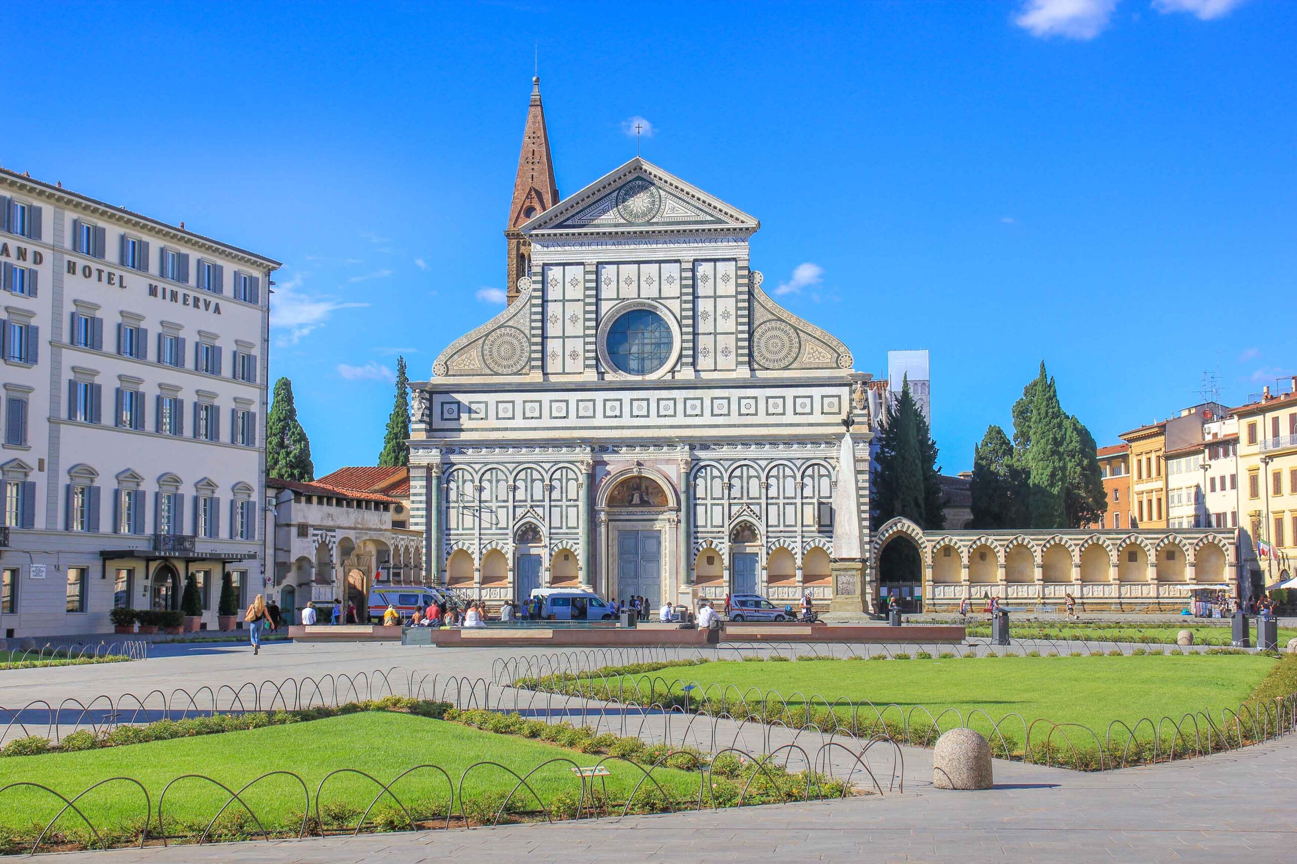 The church of Santa Maria Novella is one of the most impressive religious buildings in the city center. It is located in the northwest of Florence’s historic center, in front of the Santa Maria Novella train station. The building has a long history. Built in the 13th and 14th centuries, the church has been renovated several times over the years. The beautiful Renaissance façade was completed in 1920. The interior of the church is also very interesting. Inside you can admire important works such as the 50-meter-long fresco “The Holy Trinity” by Masaccio and the pulpit by Brunelleschi.