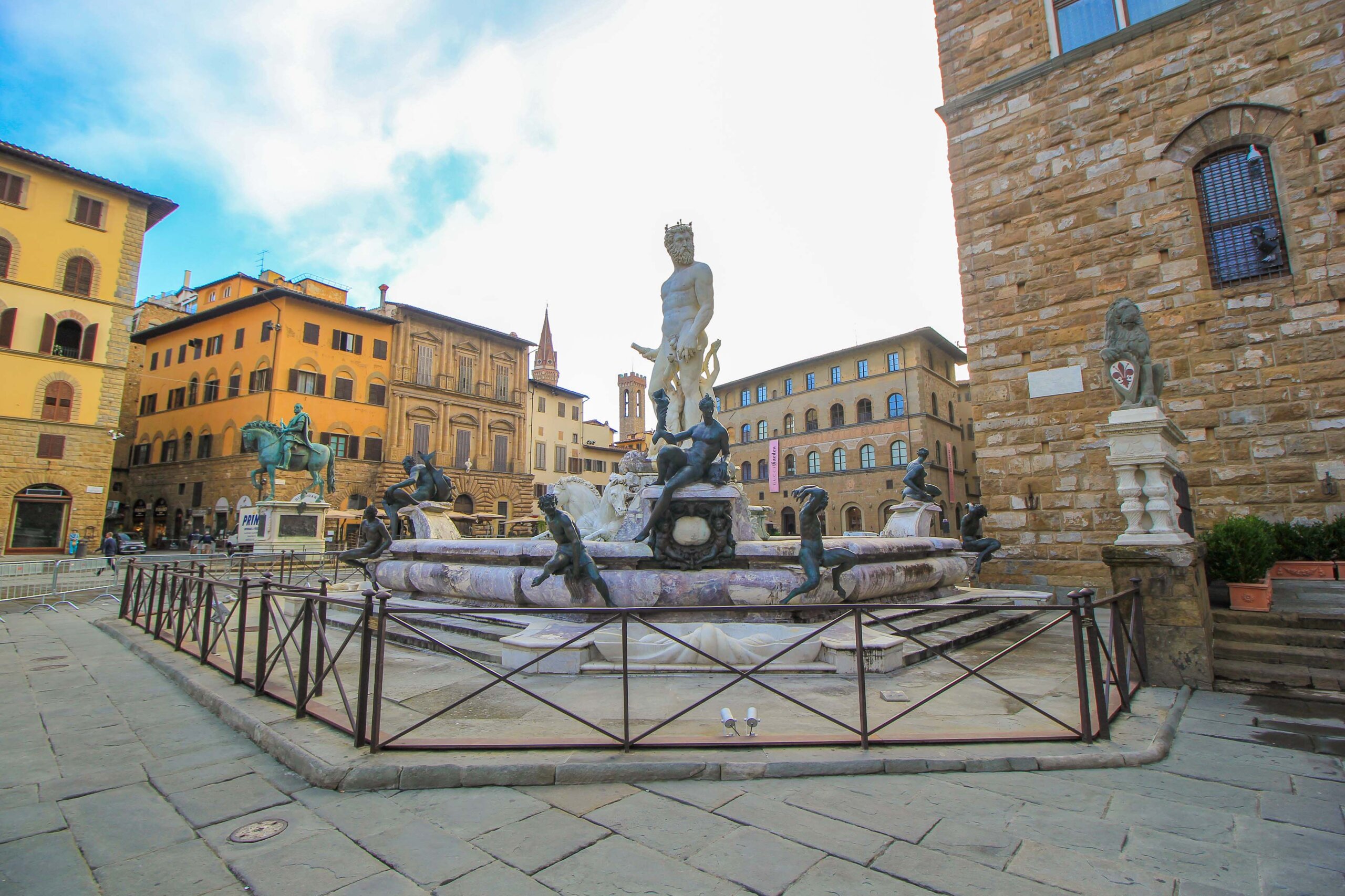 The beautiful Neptune Fountain is a real jewel in the heart of Florence. It is located in Piazza della Signoria and is one of landmarks of the city. The fountain was built in 1565 on the occasion of the wedding of Francesco de’ Medici with Giovanna d’Austria and is the work of the sculptor Bartolomeo Ammannati. In the center of the fountain there is the famous statue of Neptune, although at present the original can be seen in the National Museum. In the basin that surrounds the god of the sea, there are also many beautiful details and statues with nymphs and river deities to be admired.