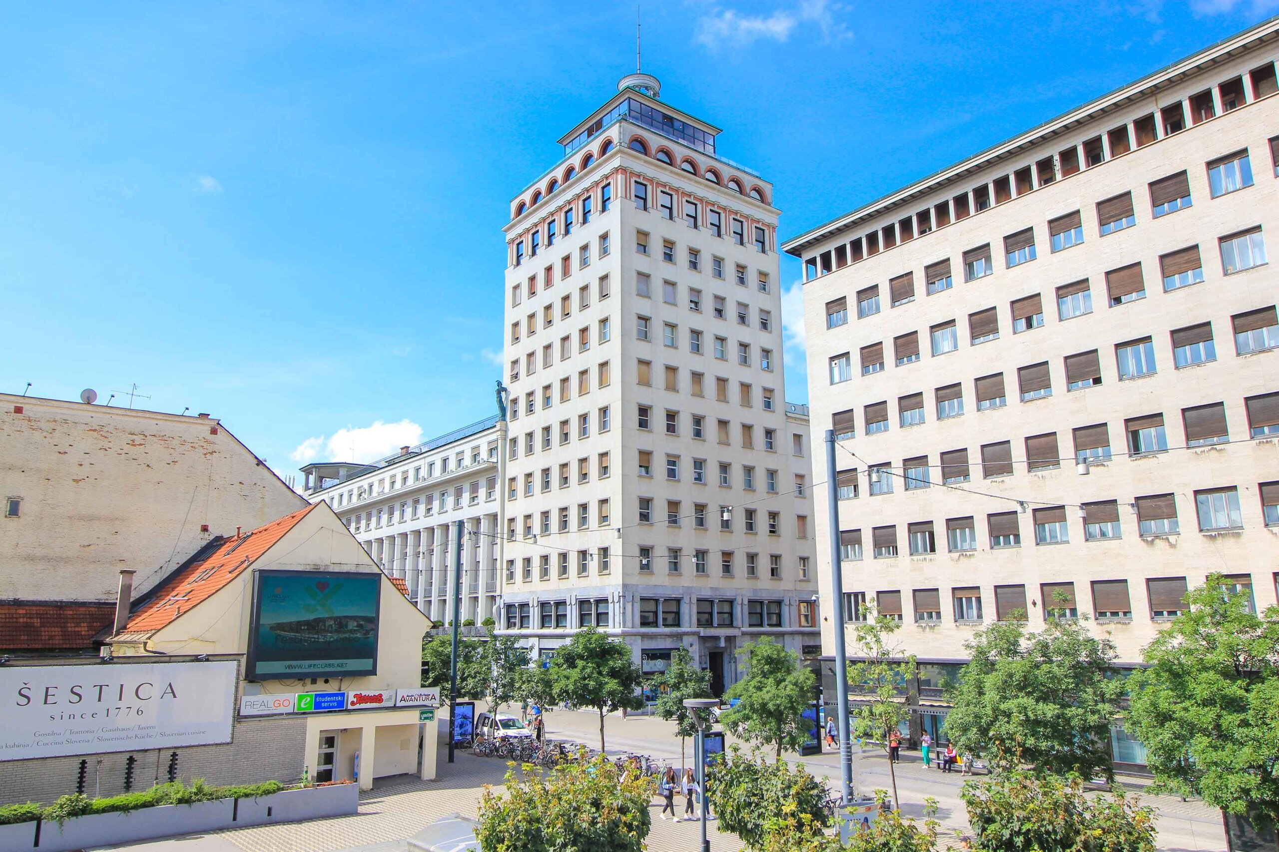 Located on the left bank of the Ljubljanica River, Congress Square is one of the most important squares in town and should not be missed when visiting Ljubljana. Located on the left bank of the Ljubljanica River, it can be easily explored during a walking tour of the city. Since 2021, the Congress Square has been on the UNESCO World Heritage List, together with the works of Jože Plečnik. Zvezda Park, the University building, the Slovenian Philharmonic building, the Biedermeier house and the classicist building “Kazina” are among the best attractions around the square. What is also unique is the view of the Ljubljana Castle, which can be enjoyed directly from the Congress Square.