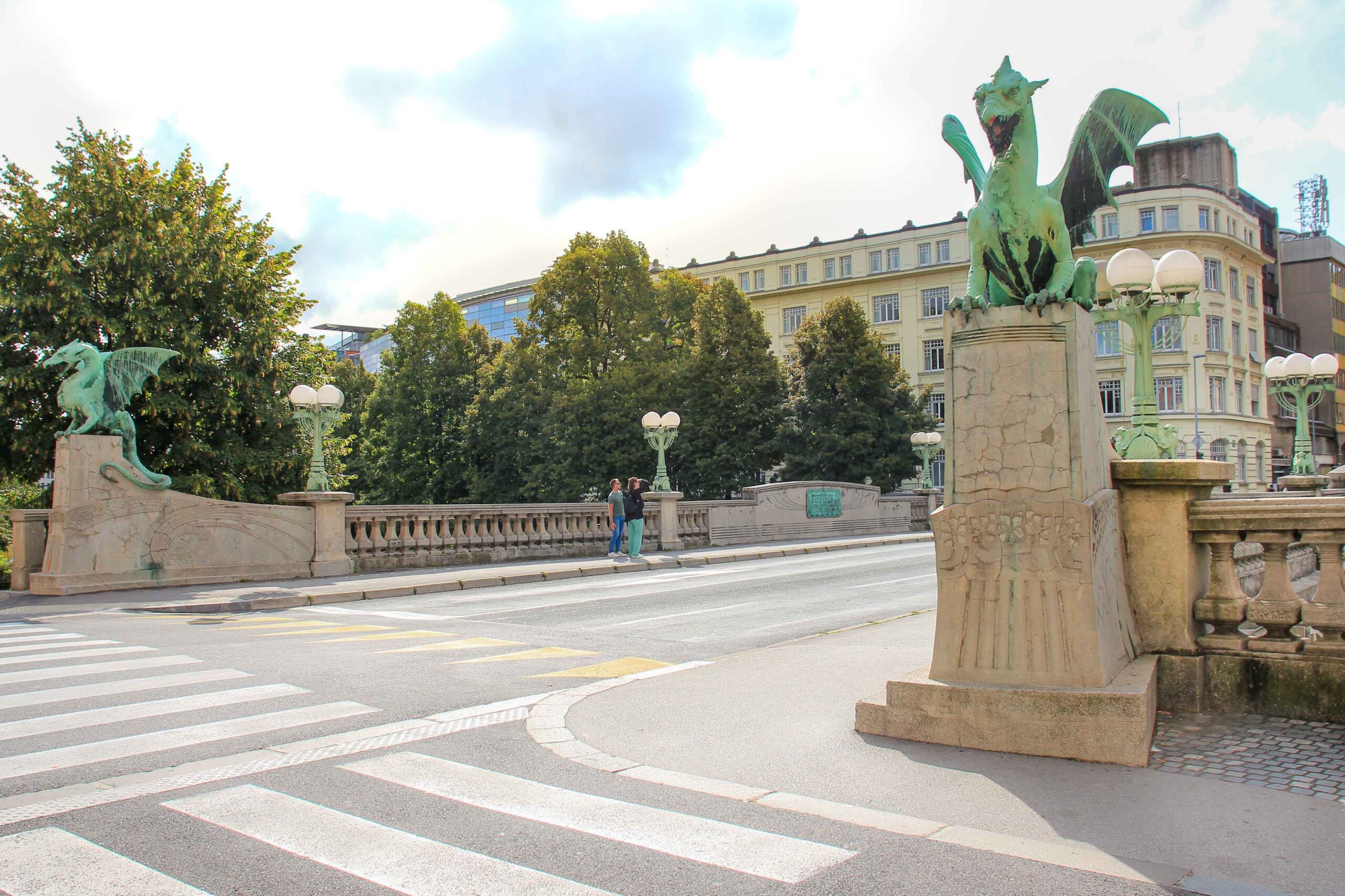 The Dragon Bridge, also known as Zmajski most, is certainly one of the most famous tourist attractions in Ljubljana. The impressive dragon statues are one of the main reasons for its fame and are one of the iconic landmarks of the Slovenian capital. They say you haven’t really been to Ljubljana until you’ve been photographed with a dragon on the bridge. Built between 1900 and 1901, the Zmajski most was then called the “Jubilee Bridge” when it was opened to celebrate the 40th anniversary of the reign of Emperor Francis Joseph. Its beautiful Art Nouveau character and the name “Dragon Bridge” were acquired years later.