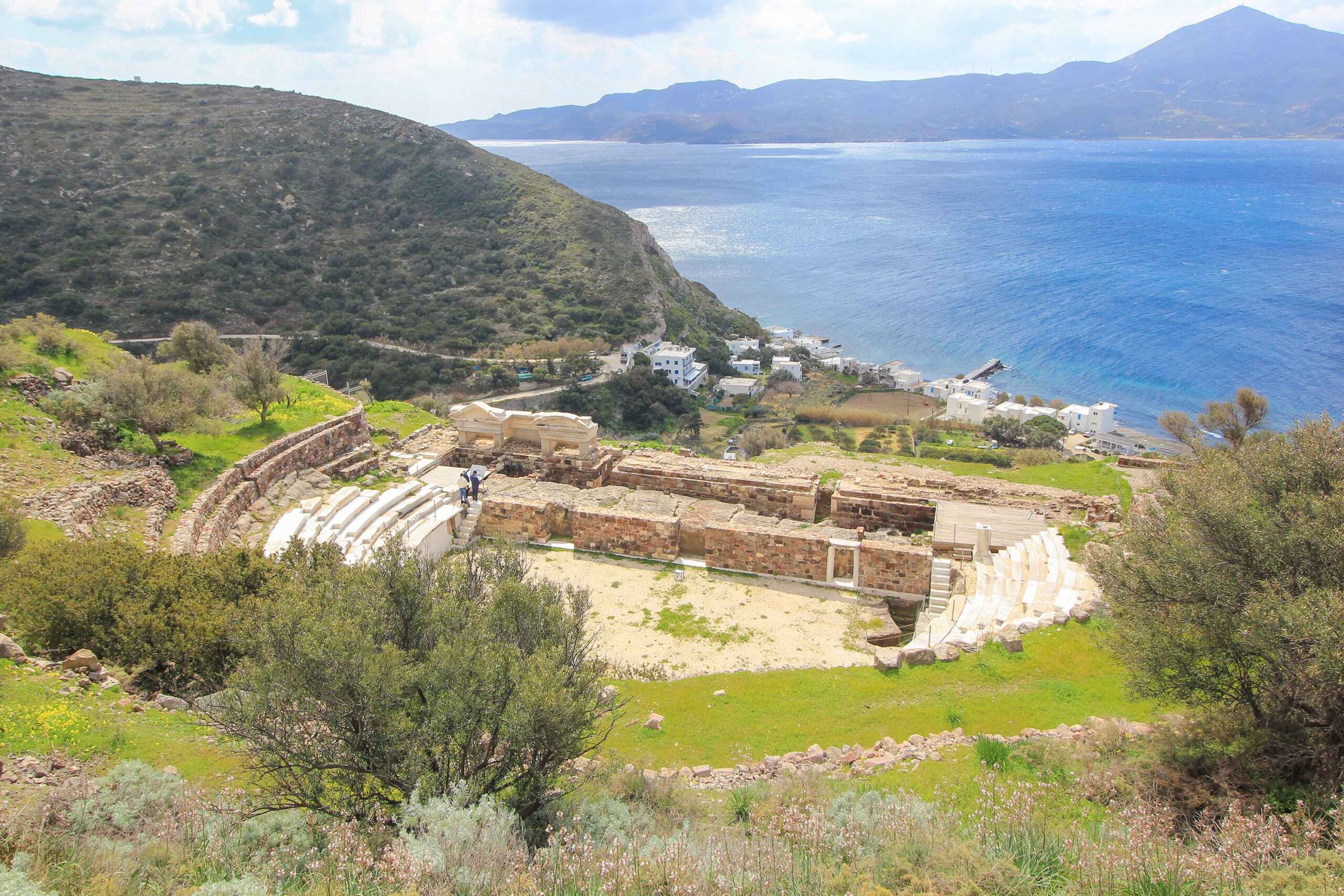 One of the best things to do is a visit to the Ancient Roman Theater and the Catacombs of Milos. Both are important historical attractions on the island and therefore very worth seeing. They are located on a hillside below the small village of Tripiti, not far from the capital Plaka. The Roman Theater dates back to the 1st-4th century AD, and at that time it could seat around 7,000 visitors. Today it’s still possible to see the marble seats, the stage, as well as the orchestra area. Not far away is the entrance to the Catacombs of Milos, whose burial chambers were cut into the soft volcanic rock. Part of these early Christian tombs can be visited during the summer months.