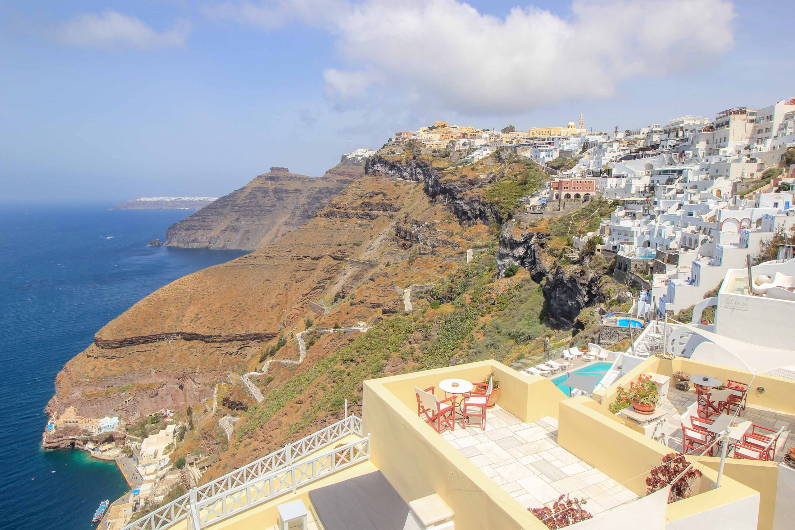 - Cave Hotel in Fira: The Iriana Suites offers beautiful rooms, many of which are cave-style! The breathtaking sea views are also unique.