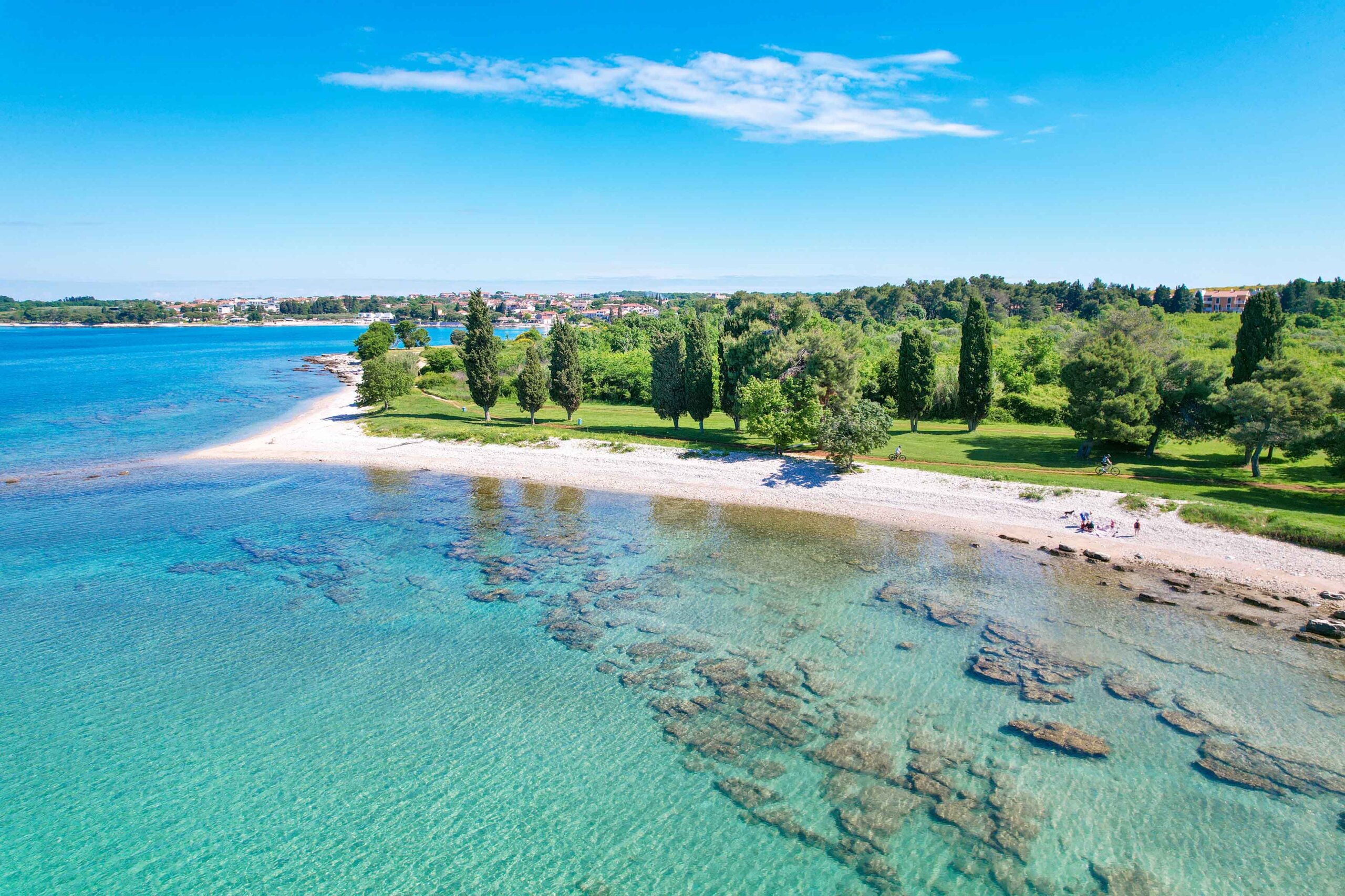 Beautiful and a beach highlight is the picturesque Polynesia Beach, situated a few kilometers north of Umag. Here you can expect a real dream beach with almost kitschy turquoise blue sea colors and surrounded by an enchanting Mediterranean landscape. Moreover, on this part of the coast there is an important historical sight. The sunken city of Sipar, a Roman excavation site with an exceptionally beautiful backdrop, is located on the headland that juts into the blue sea like a crescent.