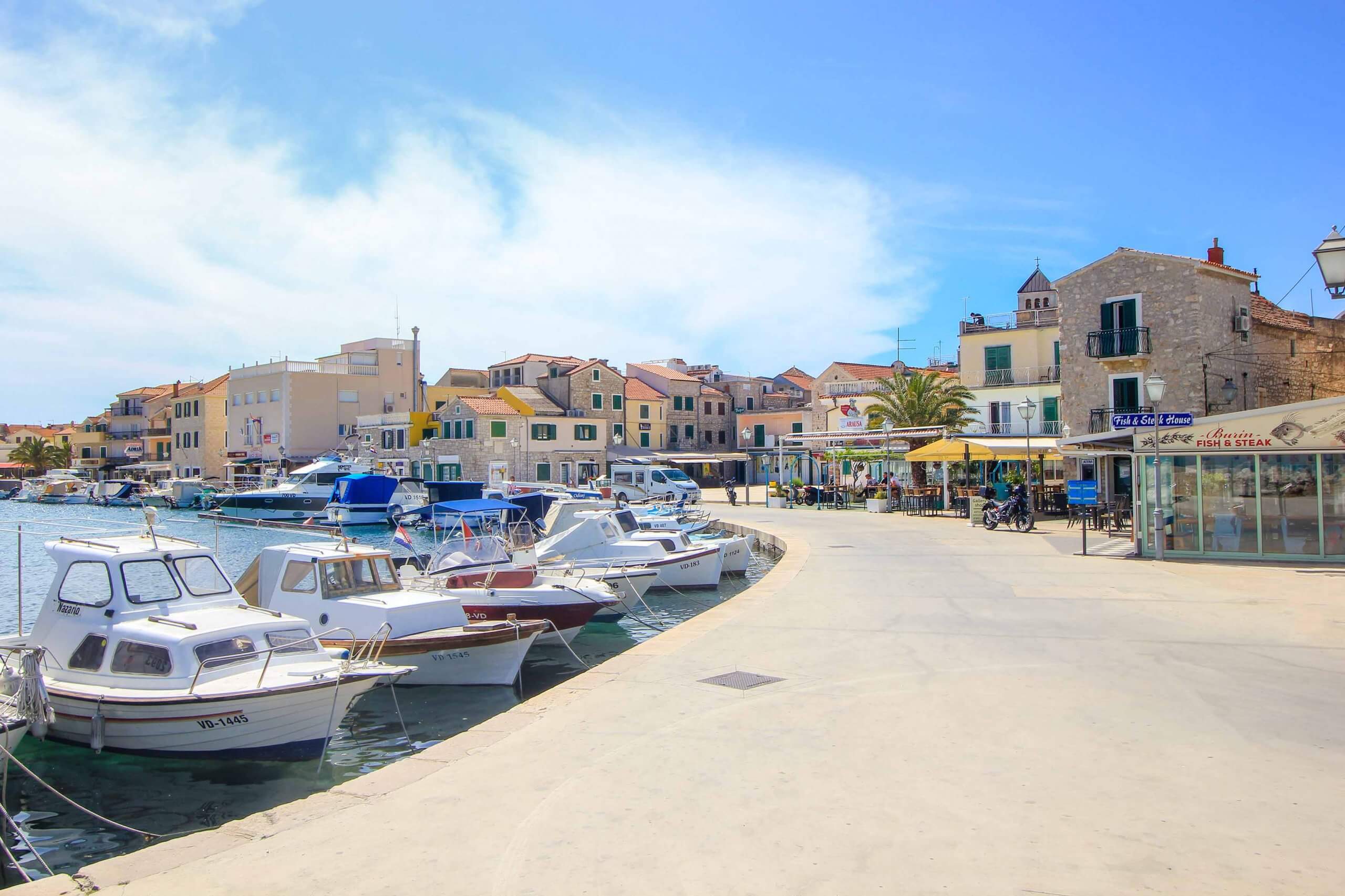 Vodice, a town of approximately 8,800 inhabitants, is located in the Dalmatia region, about 3 kilometers from Tribunj and 10 kilometers from Sibenik. Several times, this vacation pearl was chosen as one of the most popular coastal towns in Dalmatia. The tourist center is the old town together with the marina. A 4-kilometer-long promenade connects the town center with the beaches of the various vacation settlements. Especially in summer, there is always something going on, festivals are held, street artists provide entertainment, restaurants serve Dalmatian cuisine, and the beach clubs invite to party. Nevertheless, away from the hustle and bustle you can find many quiet spots, which are also well suited for families with children.