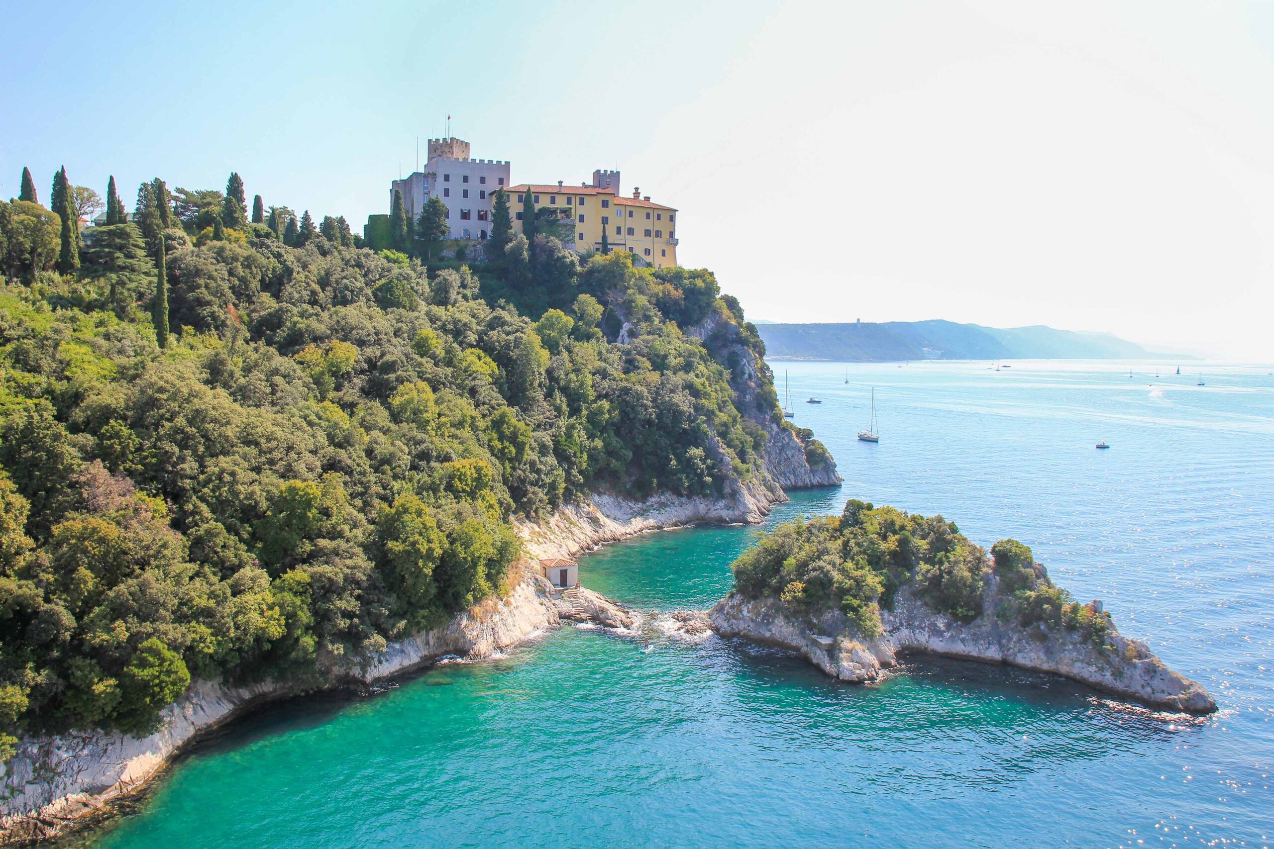 The enchanting Sistiana is certainly the most beautiful and popular vacation resort on the entire Trieste Riviera, around 20 kilometers northwest of the city center. Here you will find a variety of beautiful beaches with turquoise sea, picturesque cliffs and the impressive marina of Portopiccolo. Also, the choice of accommodation and hotels in Sistiana is also excellent. Furthermore, a hike along the famous 2-kilometre Rilke Trail, which leads from Sistiana along the breathtaking coastline to Duino Castle, is a truly breathtaking and unforgettable experience.