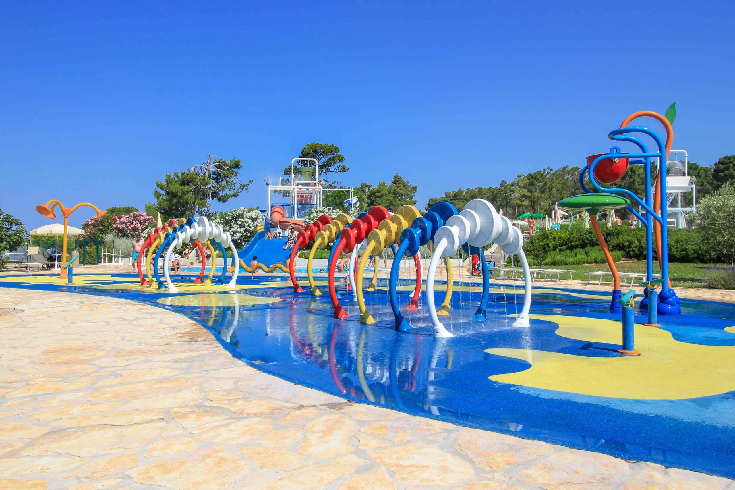 In addition to that, resort guests also enjoy a spacious pool area, a cool slide park and other leisure facilities, such as mini golf, beach volleyball, climbing nets and a tennis court. Food and drinks are provided here by several restaurants, beach bars and snack bars, all of which are located just behind the beach.